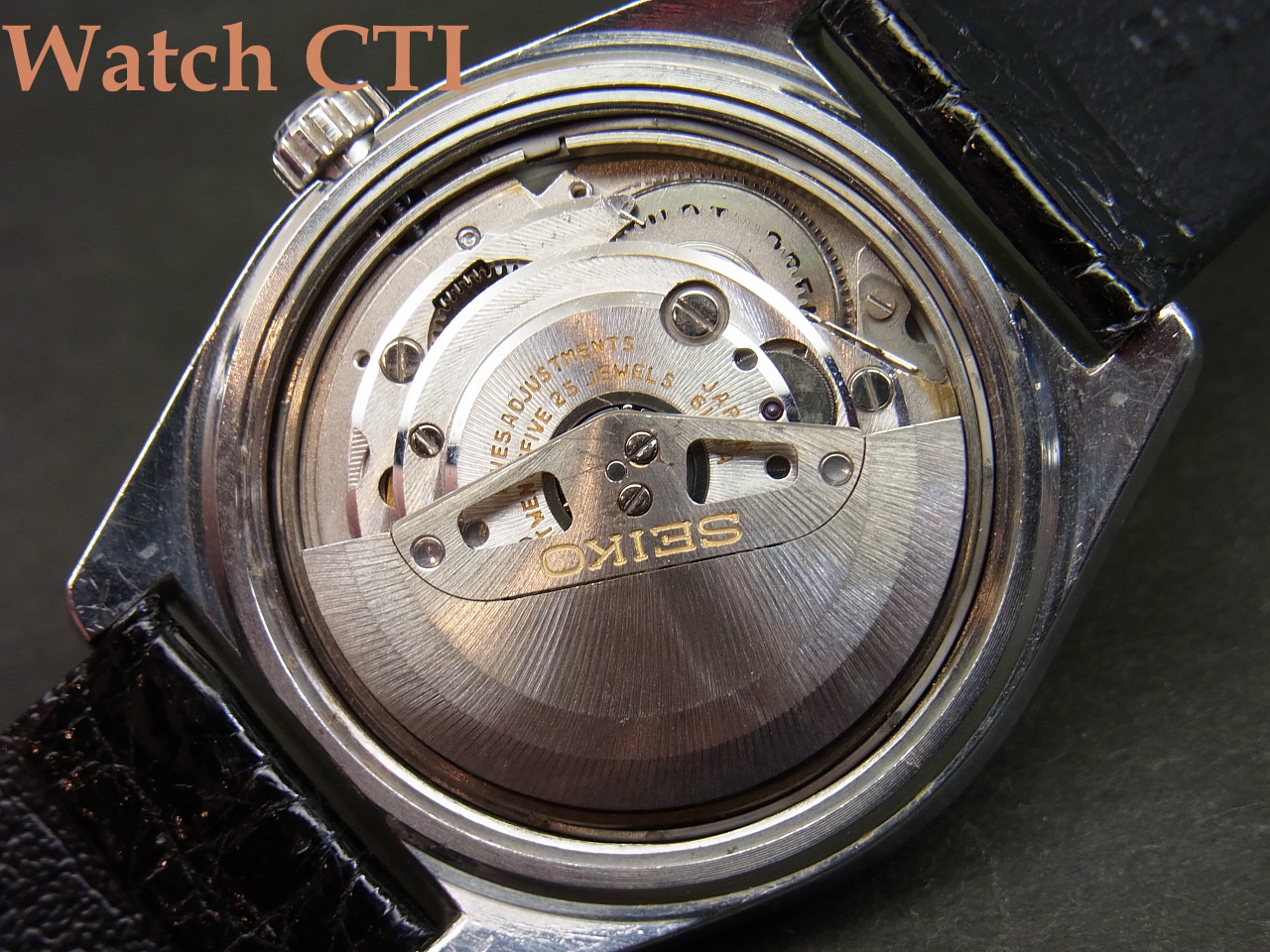 We will change the Crocodile, Lizard, and other Leather Straps against Washington Treaty fitted on this to the Calf Leather strap. It is prohibited to export the crocodile and some other leather items without CERTIFICATE of ORIGIN by the Washington Treaty. The leather straps sold in JP domestic market usually does not have the CERTIFICATE.