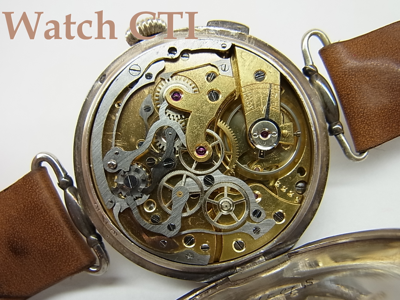 ☆機械は14型のヴァルジューがベースとなっているようです。当時のクロノグラフは、時代やメーカー仕様でかなり細かくモディファイがあり特定が難しいものが多いのですが、おそらくCAL.22でしょう。オーバーホールしたてで作動良好ですし、外観的にもダメージなどは見当たりません。海外で「ギルトブラス」と呼ばれる「粒金」仕上げが美しくあの時代がしのばれる逸品ですね。