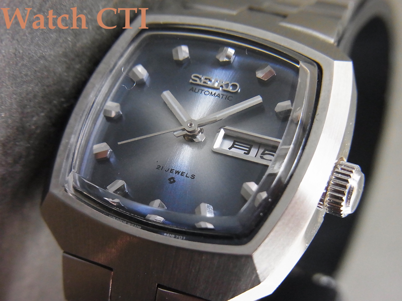 今、ヴィンテージ品としての評価は「使い込まれていない品」という点で高評価が付くのであり、売れ残っていた時計店では棚卸されて以来長い年月を経た厄介者でした…..当然「経年変化」がでています。中には、棚卸後にパーツを取られてドナーになってしまった個体だって出てきます。そういう点でデッドストック品にはエンドユーザーに実用使用された痕跡はなくとも棚卸以降の時計店での現在までの保管状況次第ではユーズド品にも劣る品だって実際にはございます。ただし、私たちが仕入れるのはそんな中でもできる限り優良なオリジナル状態を保っているものを選択してはいるのです。が、ほぼすべての個体で何らかの経年変化痕跡や手を入れた痕跡が見られますので、工場出荷直後の「未使用新品」とは区別してお考え下さい。宜しくお願い致します。