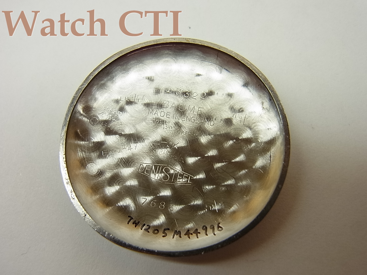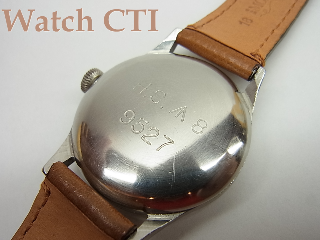 ケーシングはイギリスで行われており、イギリスの「ボーム社」製の「デニスチール」という名称のステンレススチールが使われております。裏ぶたにはシッカリとイギリスの官有物である印「ブロードアロー」が刻印されておりますね。