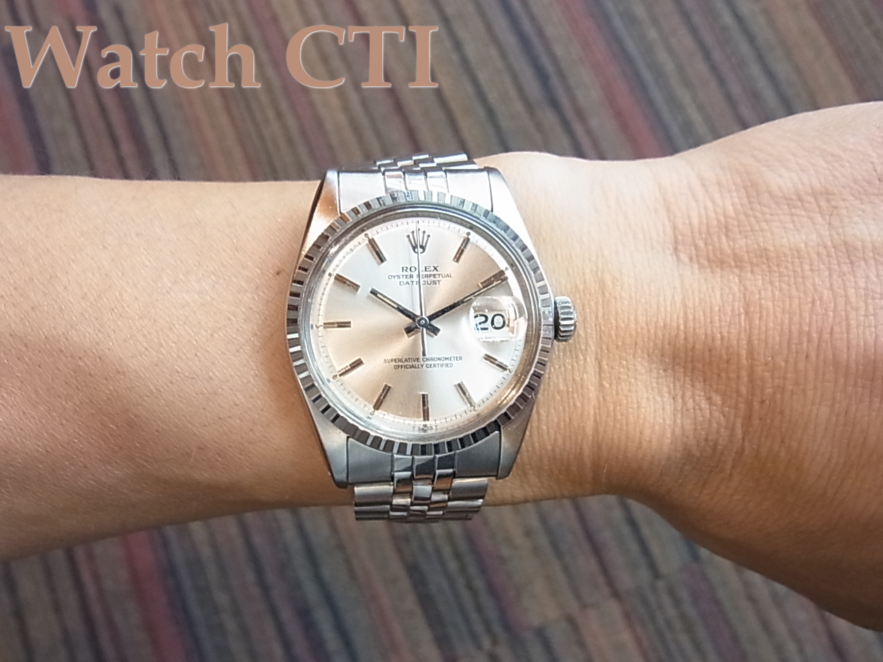 文字板の外周部分が一段落ちている等ヴィンテージの雰囲気に溢れるモデルです。ちょっと前まではホワイトゴールドのフルーティド(ギザ)ベゼルモデルRef1601の陰に隠れたような存在でしたが、ベゼルまで含めてオールステンレススチールのこの機種にはまた独特の味わいがあり、実用でもがんがん使える(防水性能の保証はご容赦ください)ヴィンテージモデルとしてお勧めの一本となります!