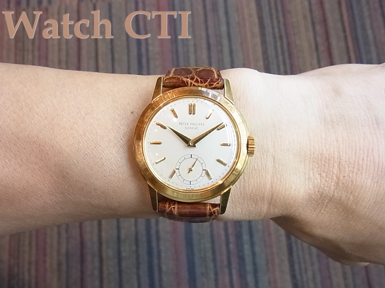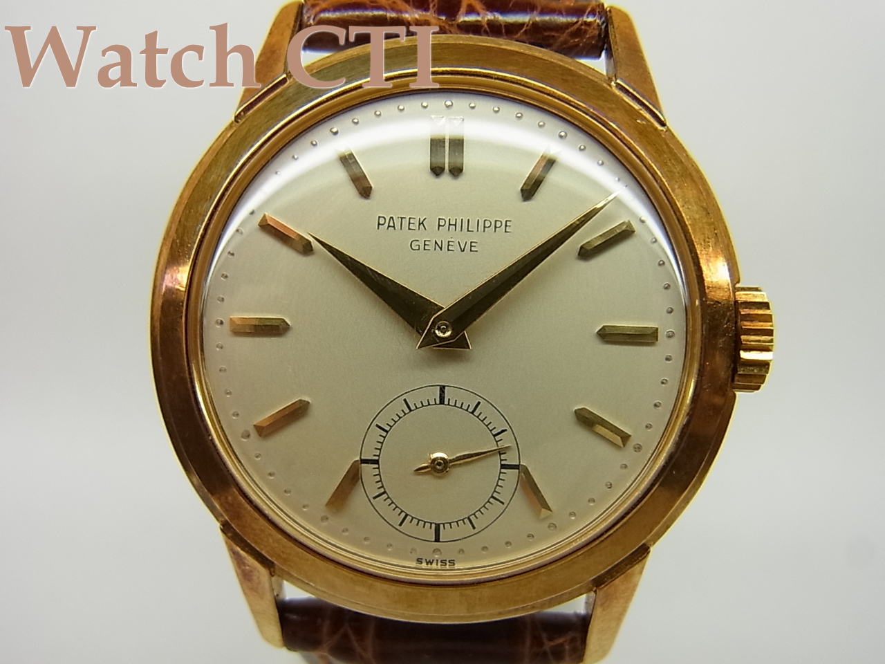 Ref.2455は96とまったく同様の文字板と針ですがケースが33mm弱と大き目となり、96では小さすぎると感じる方にはうってつけと思います。さらにミドルケースのサイドやラグのサイドに一本のラインが入っており凝った一面も見せておりまして、なかなか味わい深いケースかと思います。押しの強い感じ(と云ってもパテらしい「上品な」です)が特徴です。