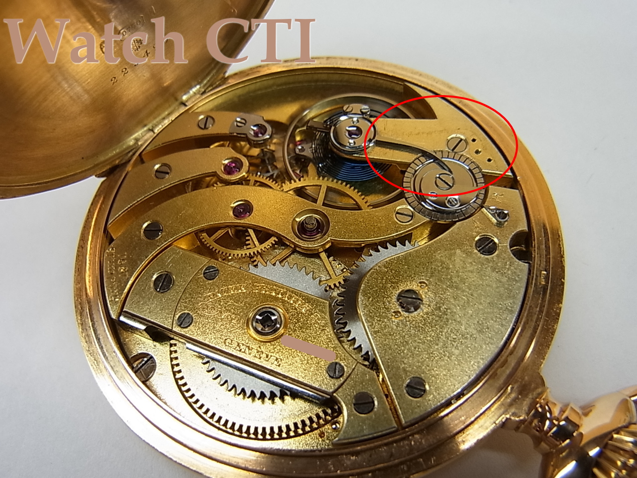 古い機械の場合しばしば見受けるのですが、緩急針の稼働範囲を広くするために職人がこのパーツを外してしまうことがあり、この現品もその様な経緯で外されてしまったようです。もともと緩急針のみでスワンネックの付かない機械の方が多いものですが、高精度をうたう機械には装着されている傾向です。この部分の欠品が時計としての作動に問題を与えることはないのですが純正状態を保っていないということですので、希望価格をぐっと下げさせて頂きます。先日47万円で掲載しましたが、38万円に価格改定致します。ぜひ御検討いただきたく思います!