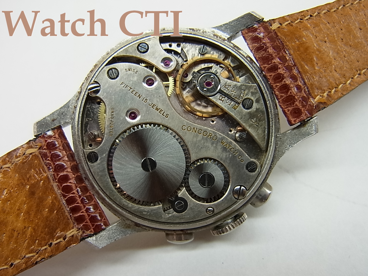 ☆文字板12時の「ちび時計」部分に「ランバートブラザーズ」銘が小さくプリントされておりますが、ケースと機械の刻印は、コンコルド・ウオッチ・カンパニーですので、コンコルドがランバートから別注を受けた所謂ショップウオッチかと推察されます。ちなみに、「ランバートブラザーズ」が」どのようなショップであるか不明ですスミマセン。