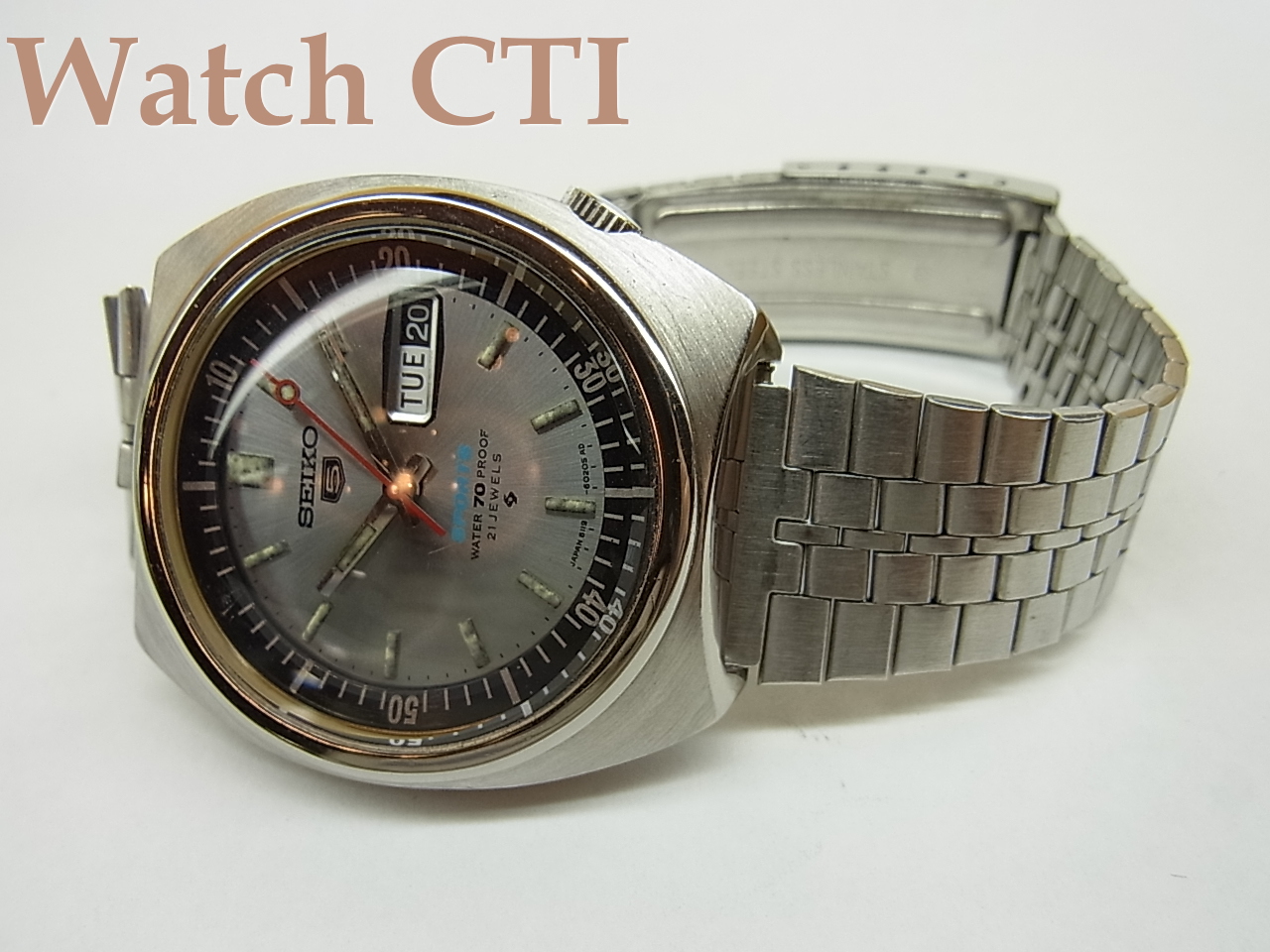 ☆ファイブスポーツは発売当時、若者向けのラインナップでしたから、販売価格も戦略的にそれなりにこなれていたものでした。で、今こうやってUSEDとしても結構お買得度の高いプライスで供給できていると思います。インナー回転ベゼルを装備している点と70メートル防水っていう中途半端なスペックが、確かに一般モデルとの差異ではありますが…….やはり「雰囲気スポーツモデル」では有ったかと思いますね!でも、その成り立ちと何というか「精一杯頑張ってます」感が微笑ましい!!実用に一本!!!