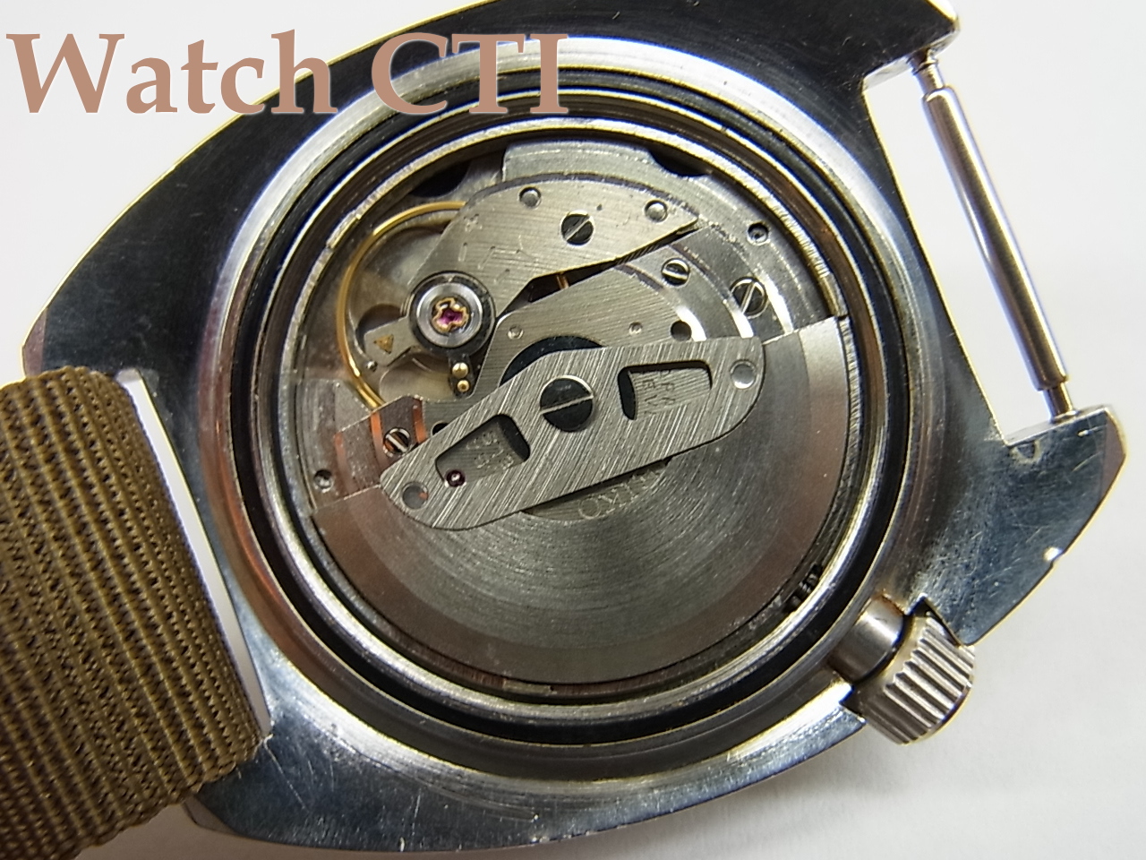 後期型との違いはケース形状のみです。文字板・機械は全くもって同一です。長短針のみ一部峰つきのほぼ同型が有ったようですが後期と全くの同一の針も確認しています。秒針は特徴的なオレンジドットの付いたダブル夜光秒針でこれは前期も後期も全く同一のようです。