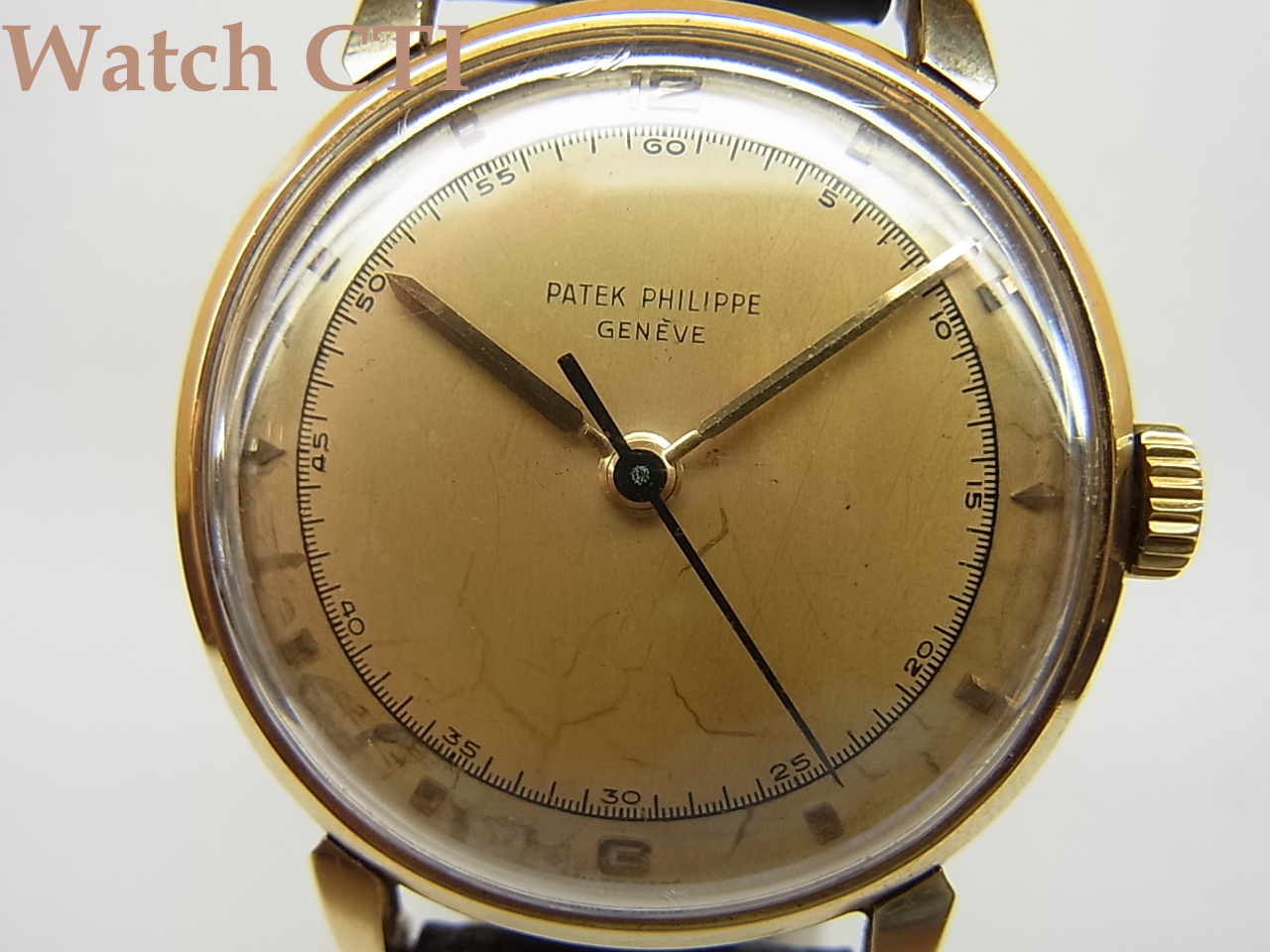 ☆パテック・フィリップのヴィンテージモデル。最近の流通品はメーカー純正で綺麗に仕上げられたものが主流ですが、本来50年間も使ったままですと、非防水ケースのモデルはこのように経年変化して行くものです。当社も含めて通常ですと販売店では、この状態のままで販売しない場合がほとんどですが、これも味です。
