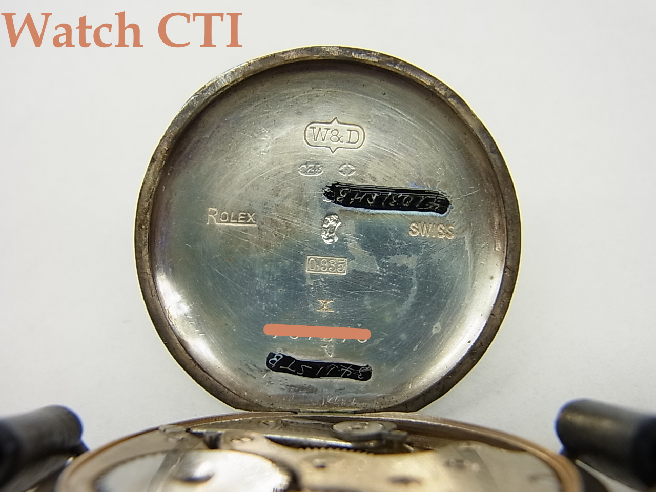 裏蓋刻印のW&D(ウイルスドルフ・デイヴィス)銘はROLEX銘が主流となる以前の最初期からつかっていた創業者銘を冠した刻印です!935シルバーは925のスターリングシルバーのチョット上をアピールしたかったのでしょうか..