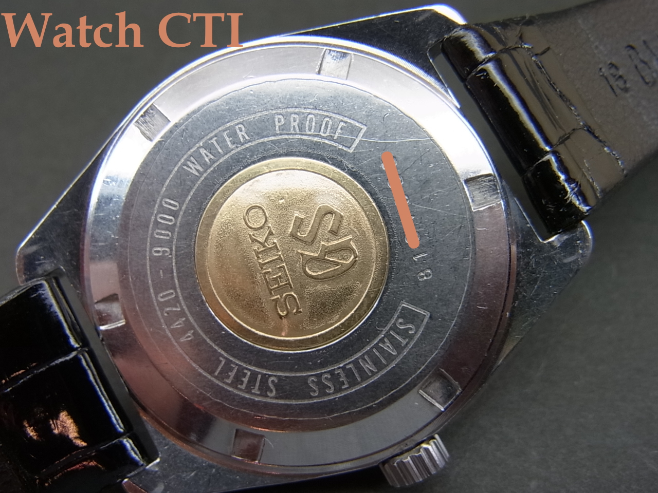 状態を引き立てるように、装着ベルトはバンビ社の国産最高級フレンチ仕立て竹符クロコダイルを付け、バックルには後年ではありますがオールドのSEIKO銘アルミ製純正尾錠を奢りました!