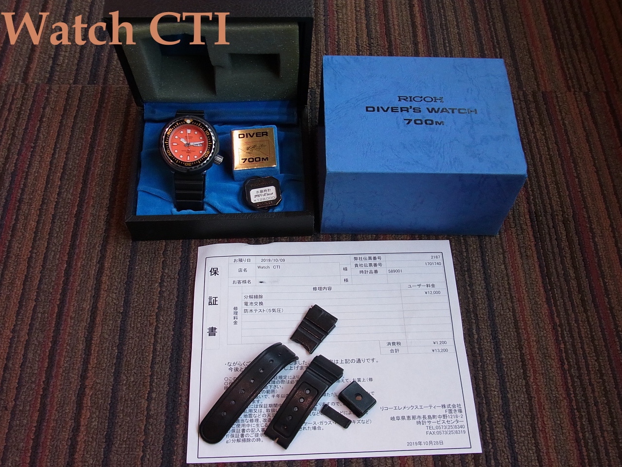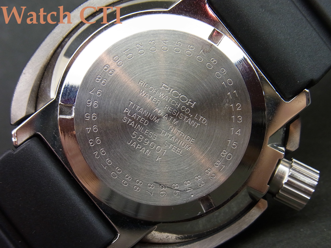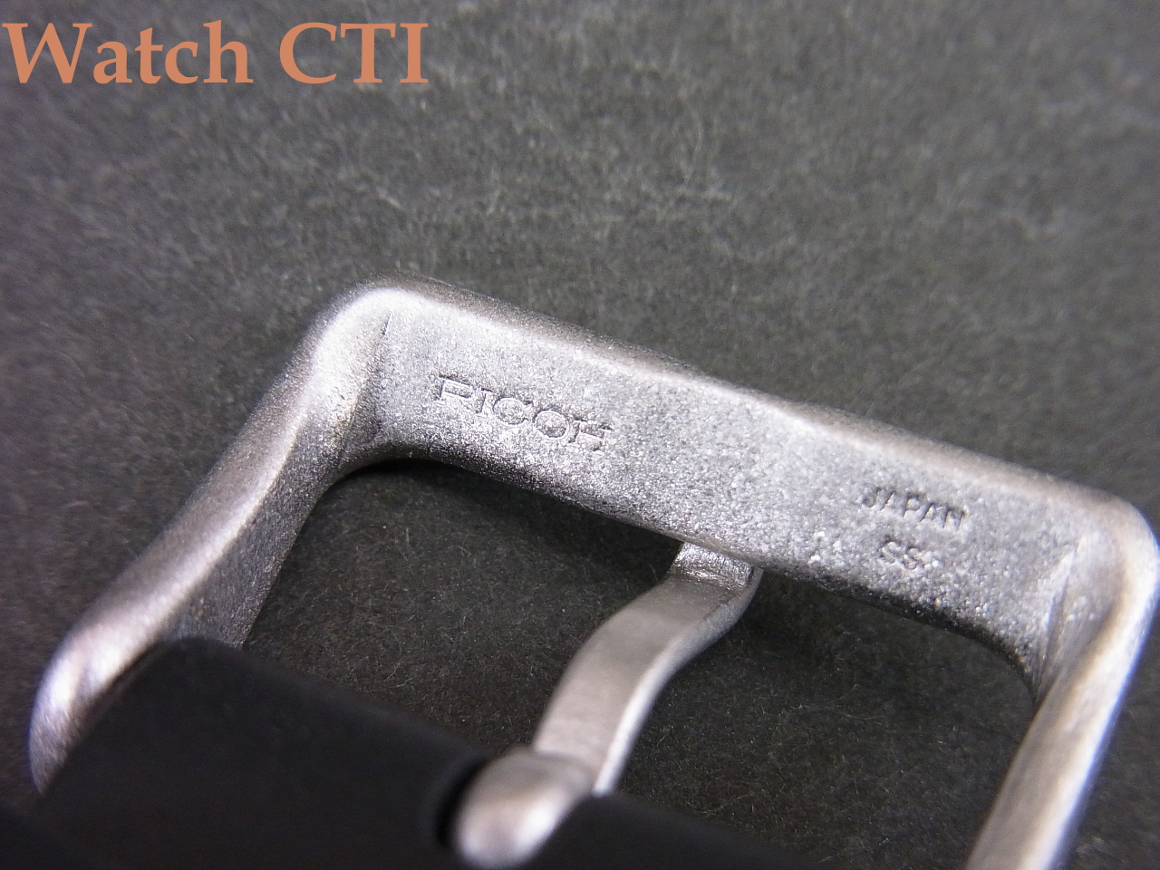 純正で付属していたウレタンベルトは経年劣化で破断してしまって使えませので現在はセイコー型の新品ウレタンベルトを装着いたしております。バックルは純正のRICOH刻印入りの物を移植してあります!