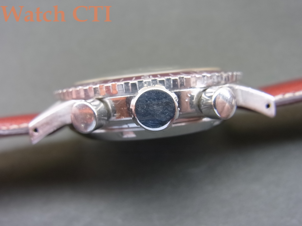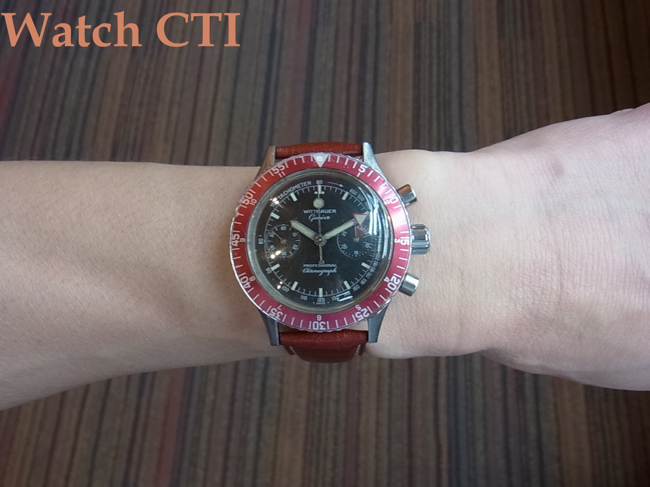 ☆中々愉しい一本です!40ミリも大型ケースに赤系色の回転ベゼルは60分積算と内側に小さく12時間積算もついてますね!
