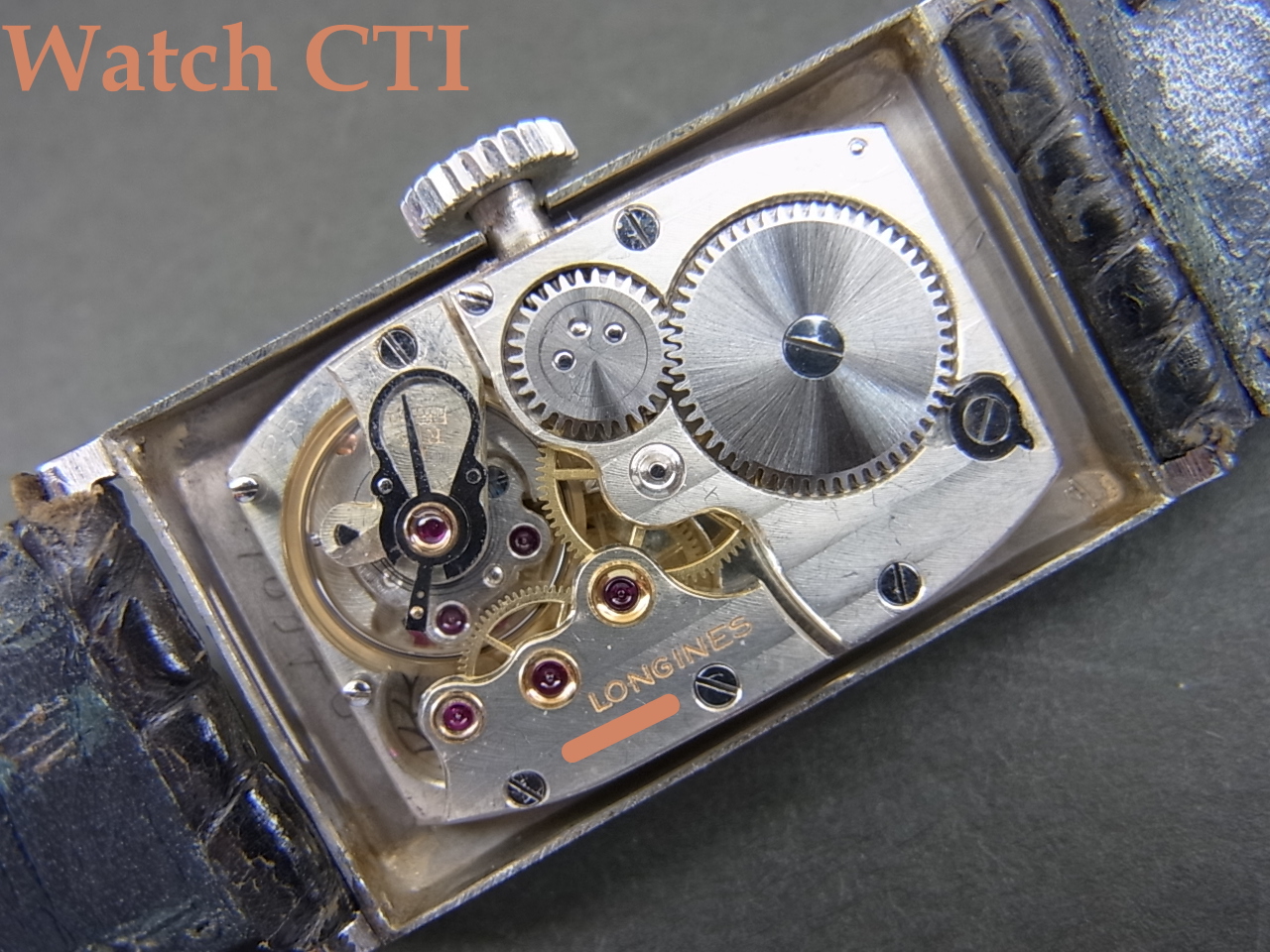 *なお、ケースにLONGINESの刻印が入っておりませんが、ムーブメントに被さる防塵カバーもこの機械専用のサイズで、このような仕様で「汎用」はあり得ません。ひょっとすると、ロンジン角型専用のスイスケースメーカー品という可能性はあるかもしれませんが…..