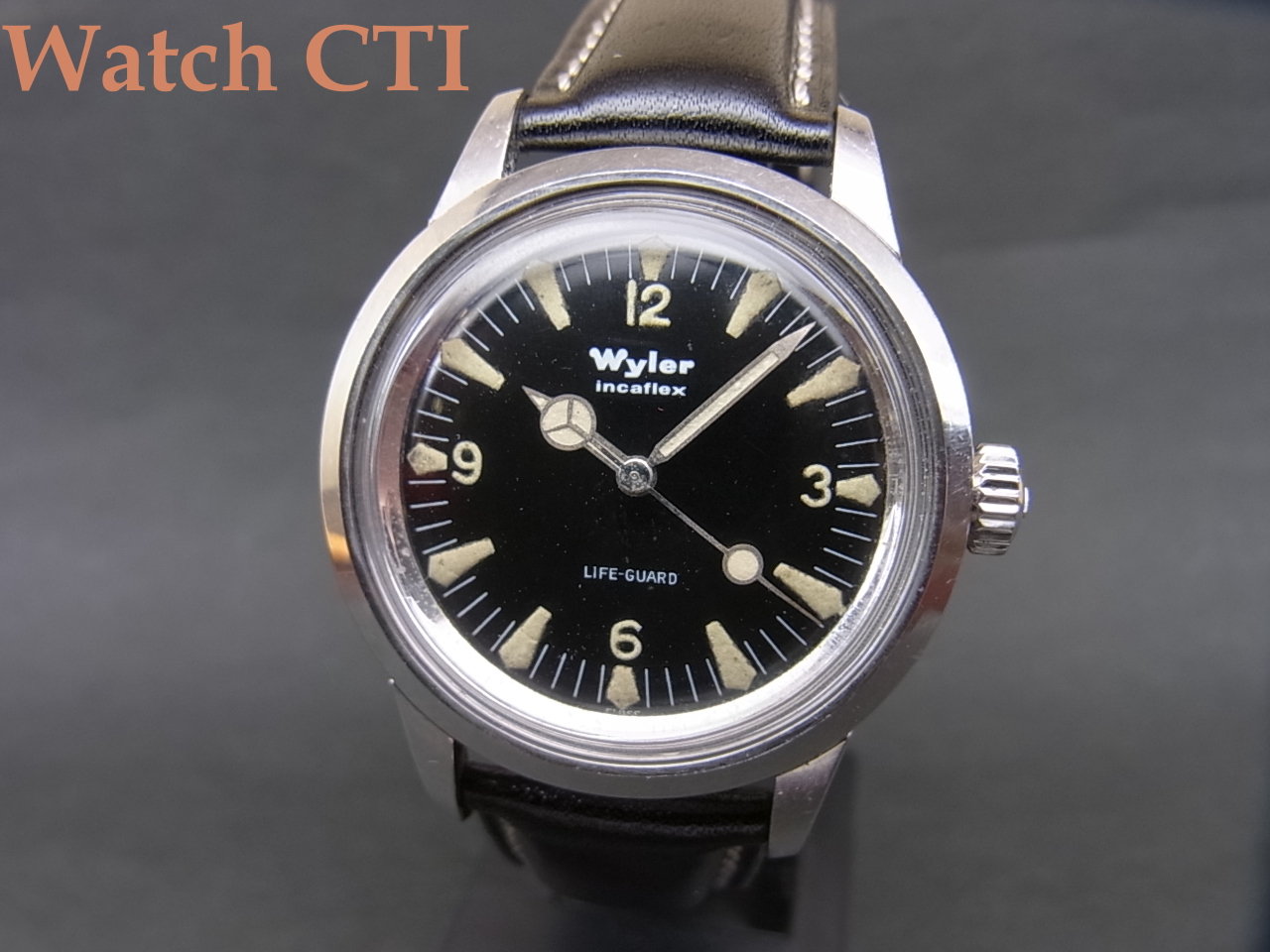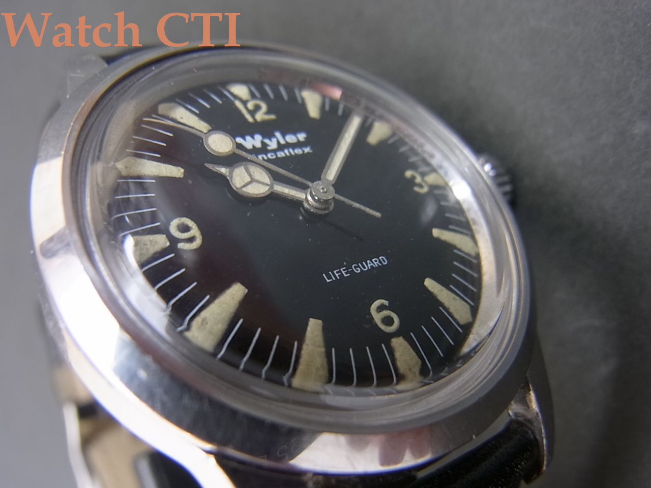 *ワンピースケースにマットブラックの夜光ダイアルを搭載しメルセデス針も夜光ですから、どうしてもEX1に似ちゃいます。でもWylerのロゴが誇らしげでしょ?