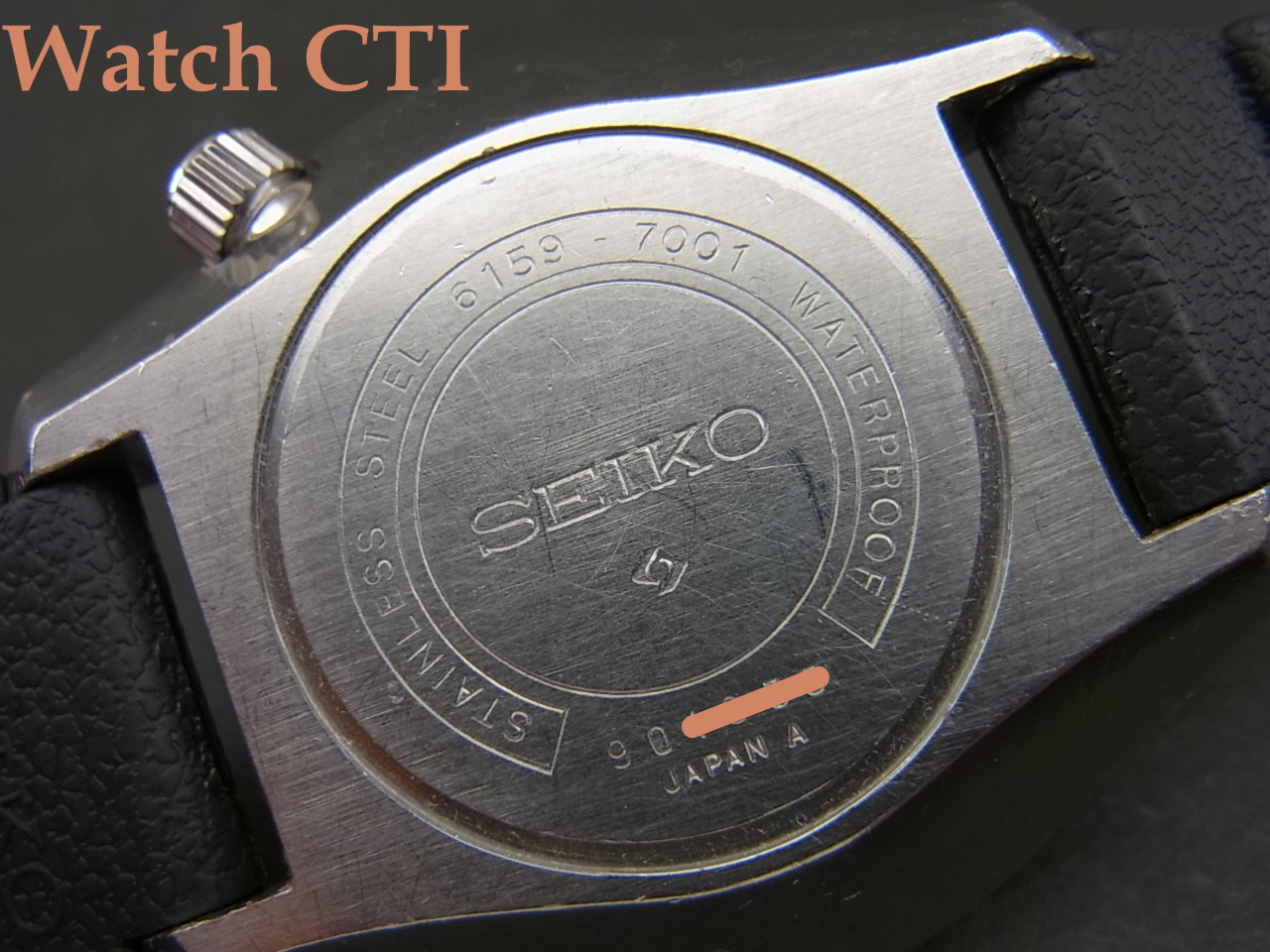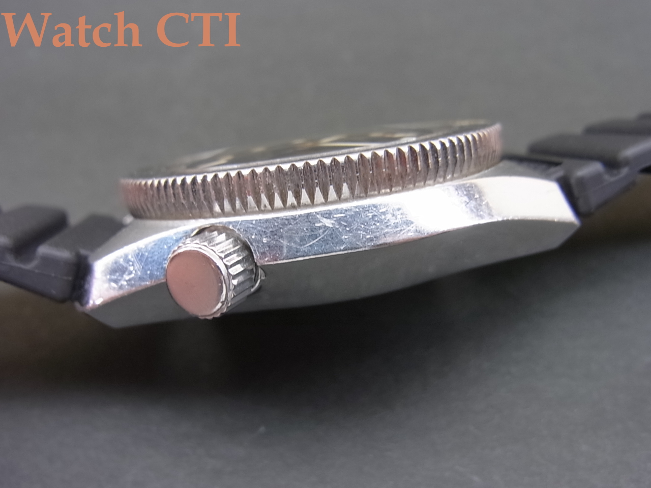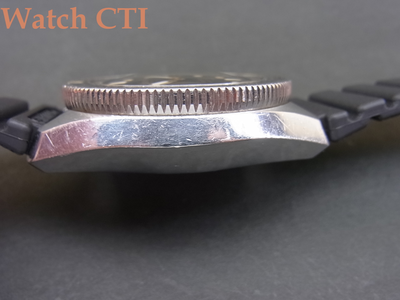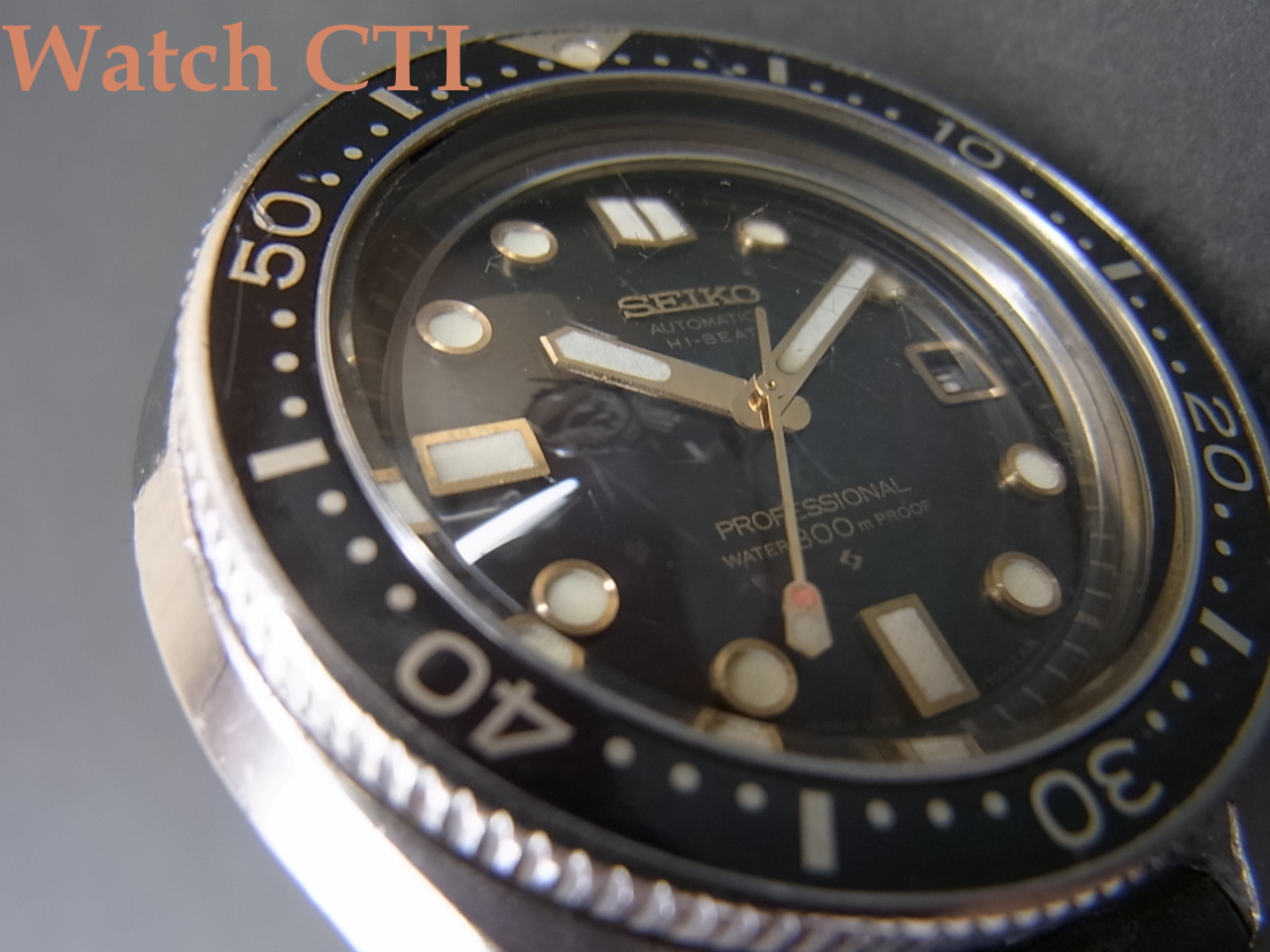 *全体に使用されたままの状態でオリジナルコンディションを保っている個体です。ケースとガラスには使用に伴う小傷は見られますが、実際のダイビングで使用されたものではないように見受けられます。ケースポリッシュは全くされておりませんので、迫力ある重心の低いセイコーデザインケースを堪能できます!なお、リューズ操作でこの現品個体特有の癖がありました。スクリューダウンリューズのねじ込の際に、一度止まったかのように感じる箇所があるのですが、その位置ではまだフルねじ込みではなく、そのまま少し強めにリューズをねじ込んでいただくと更にねじ込まれて止まります。(ケースバック側を見るとリューズのネジ山が少々目視できますが、これで正常位置である事を多くの画像で確認済みです)