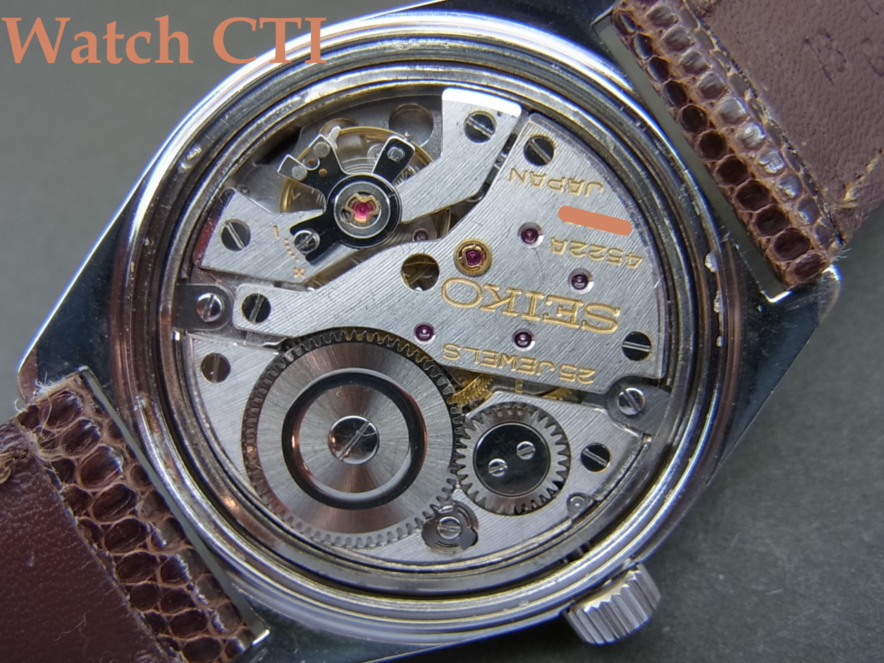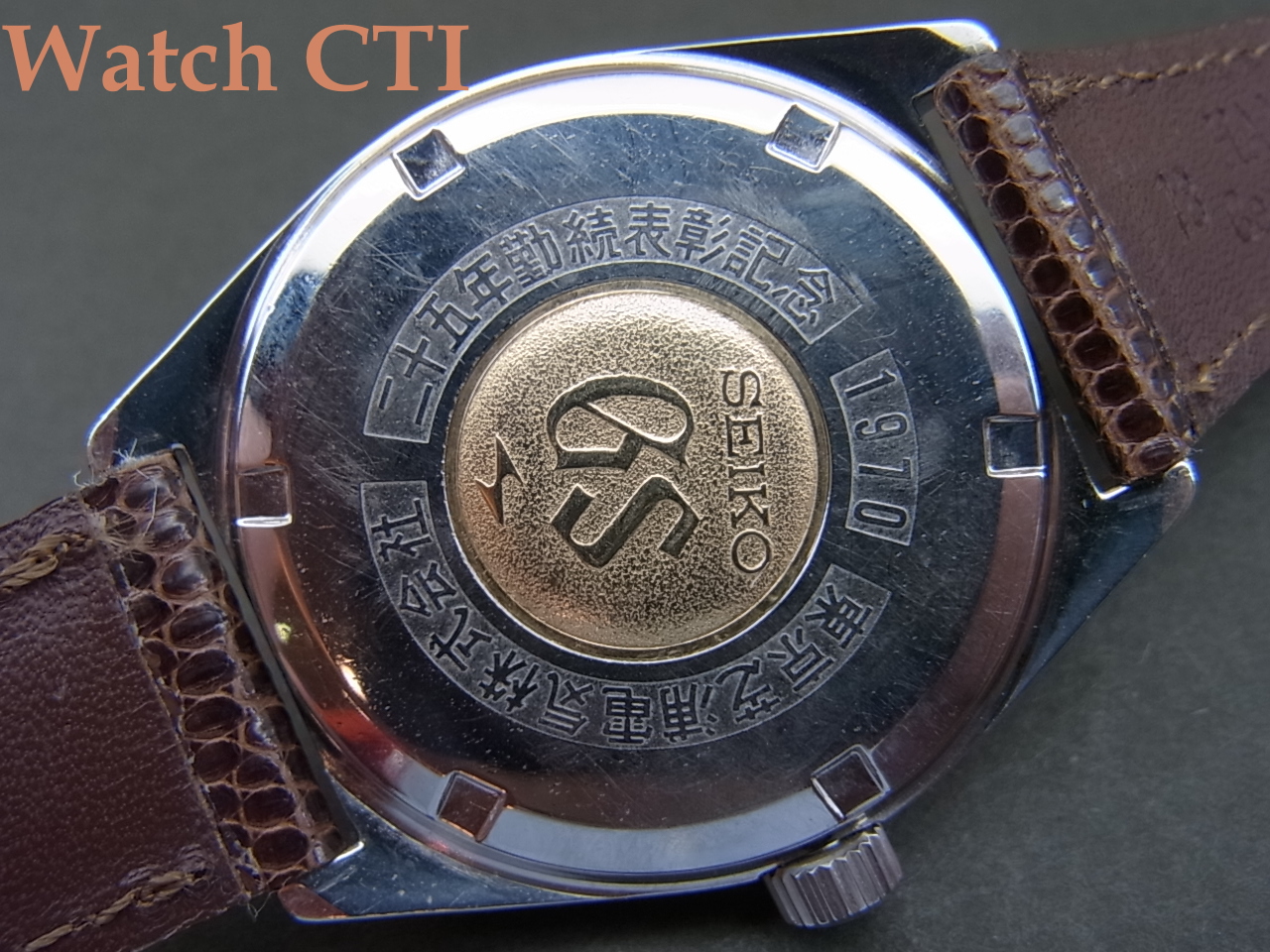 *ケースバックは見慣れた4522-8000……etc.の表示はなく、東芝の勤続25周年記念の「献辞」がしっかりと刻まれております!この「東芝」45GS以外にも57GSでも同様な刻印入りで献辞モデルがリリースされており、大企業ならではの力でSEIKOに大量別注を掛けていたことがわかります。