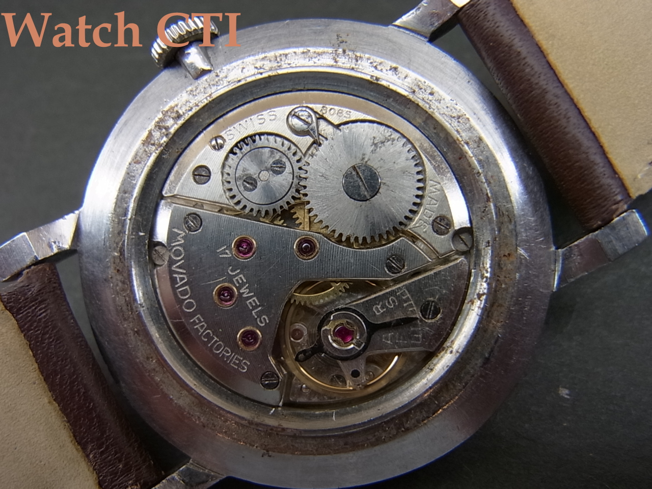 搭載される機械は手巻C.205で、見慣れた懐中時計時代を彷彿とするプレート配置のC.12xの旧キャリバーではなく、見た目にも合理化された新しいキャリバーです。この機種はあまり目にしないので詳細は不明ですが、おそらく60年代に入ってからのモデルでしょうか…..ダイアルなどのデザインはクラシカルな定番ですが、当時としてもリバイバル的一本だったのでしょう。