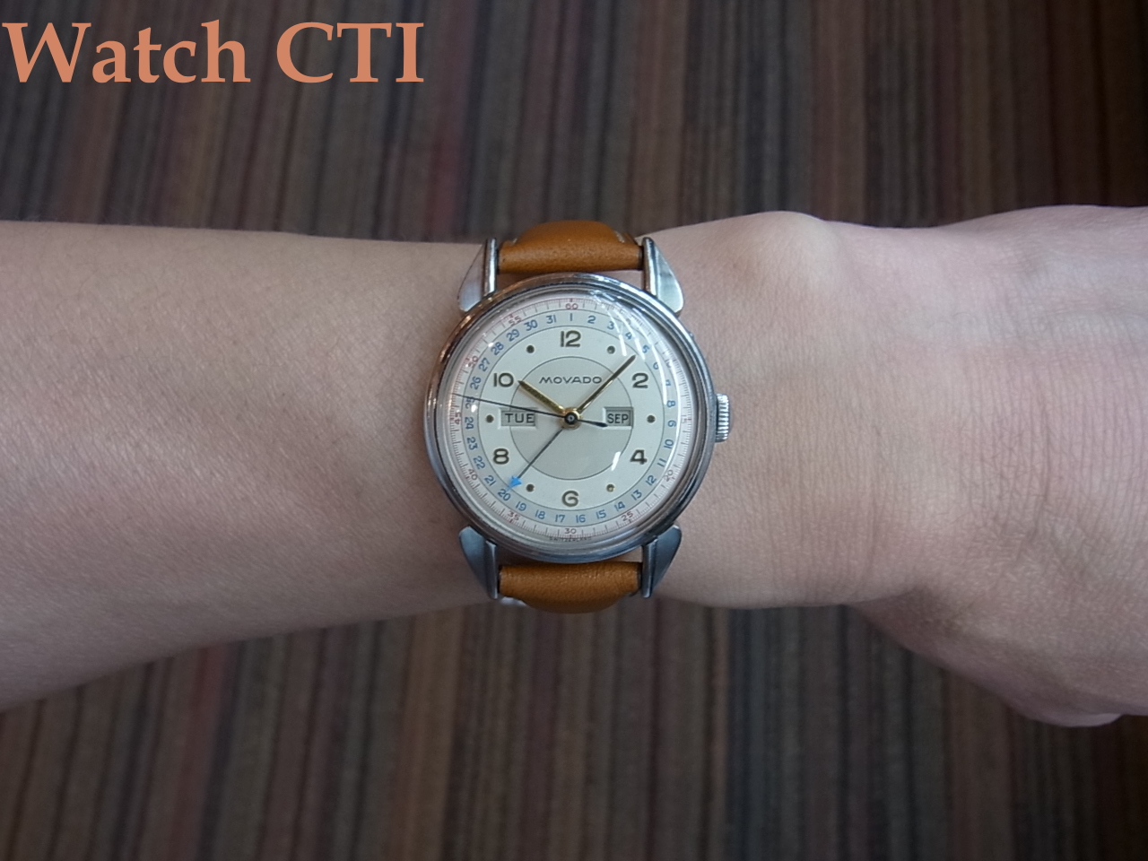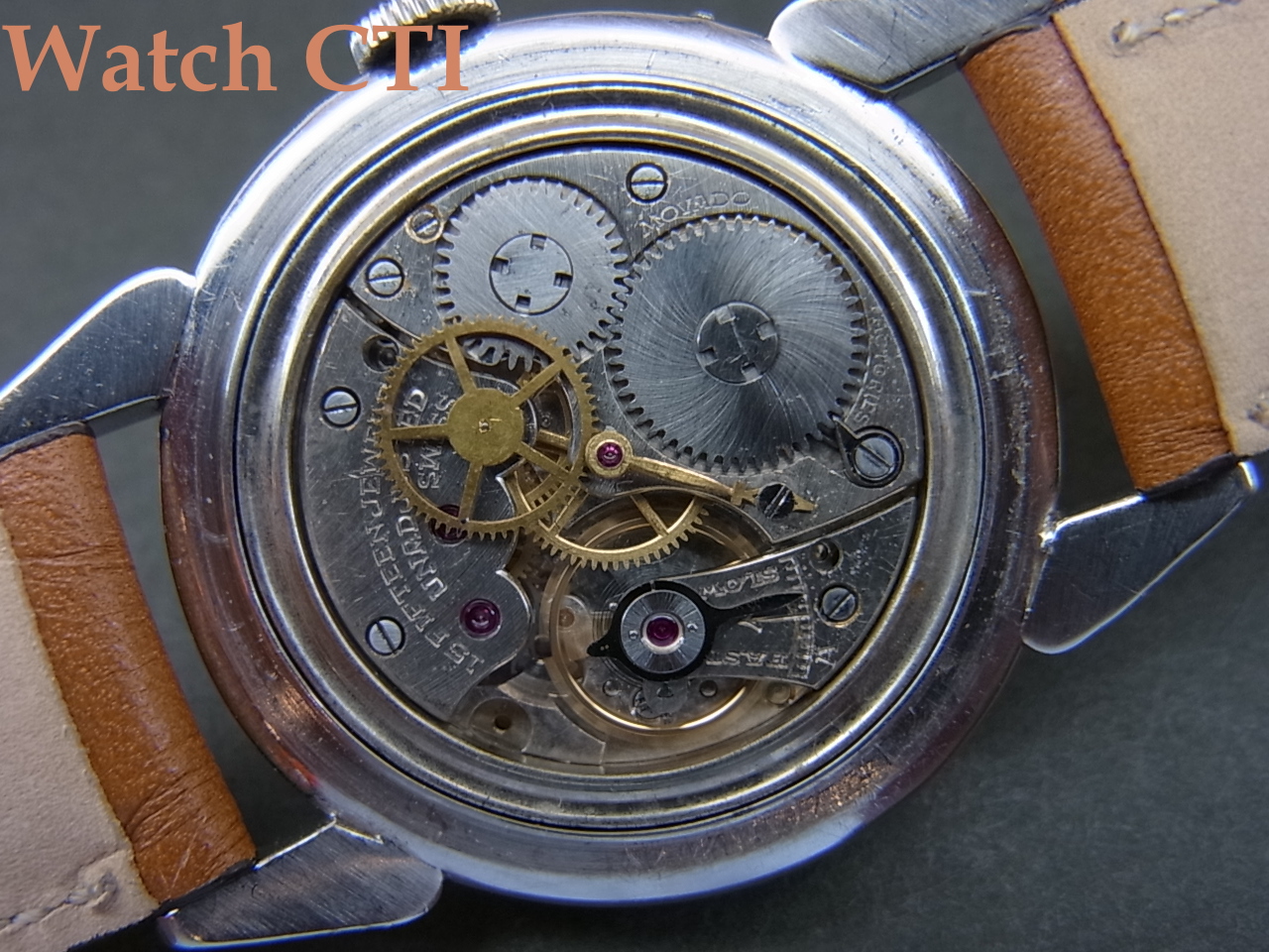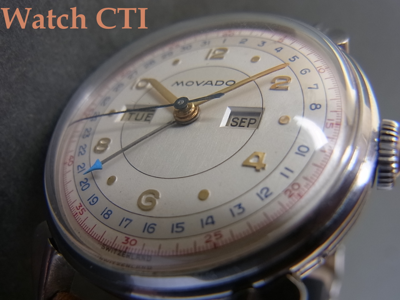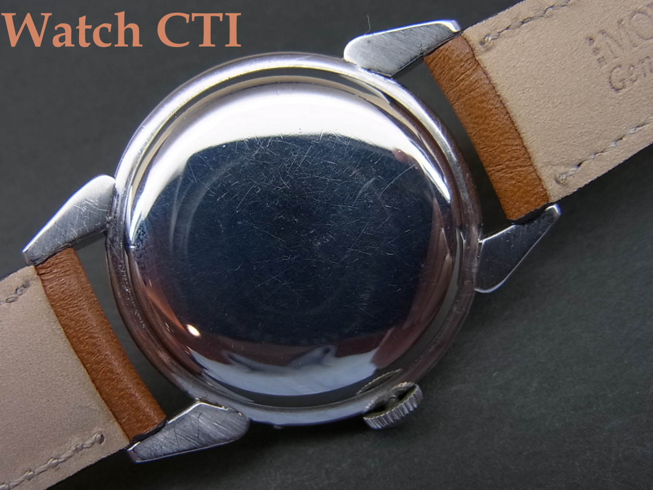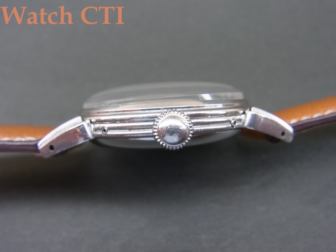 なお、付属するリューズはモバードの小型ケース製品に独特なマッシュルーム型がついておりますが、現品のラグ形状のカレンドグラフにはプレーンなラウンド型でリードエッジのものがついているものが多く、モバード純正のマッシュルーム型に付け替えている可能性がございまますので申し添えさせていただきます。まぁ、もし替わっていたとしてもとっても気の利いたモディファイですけれど….!