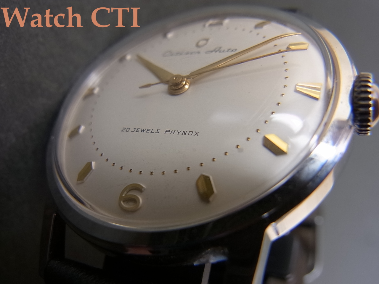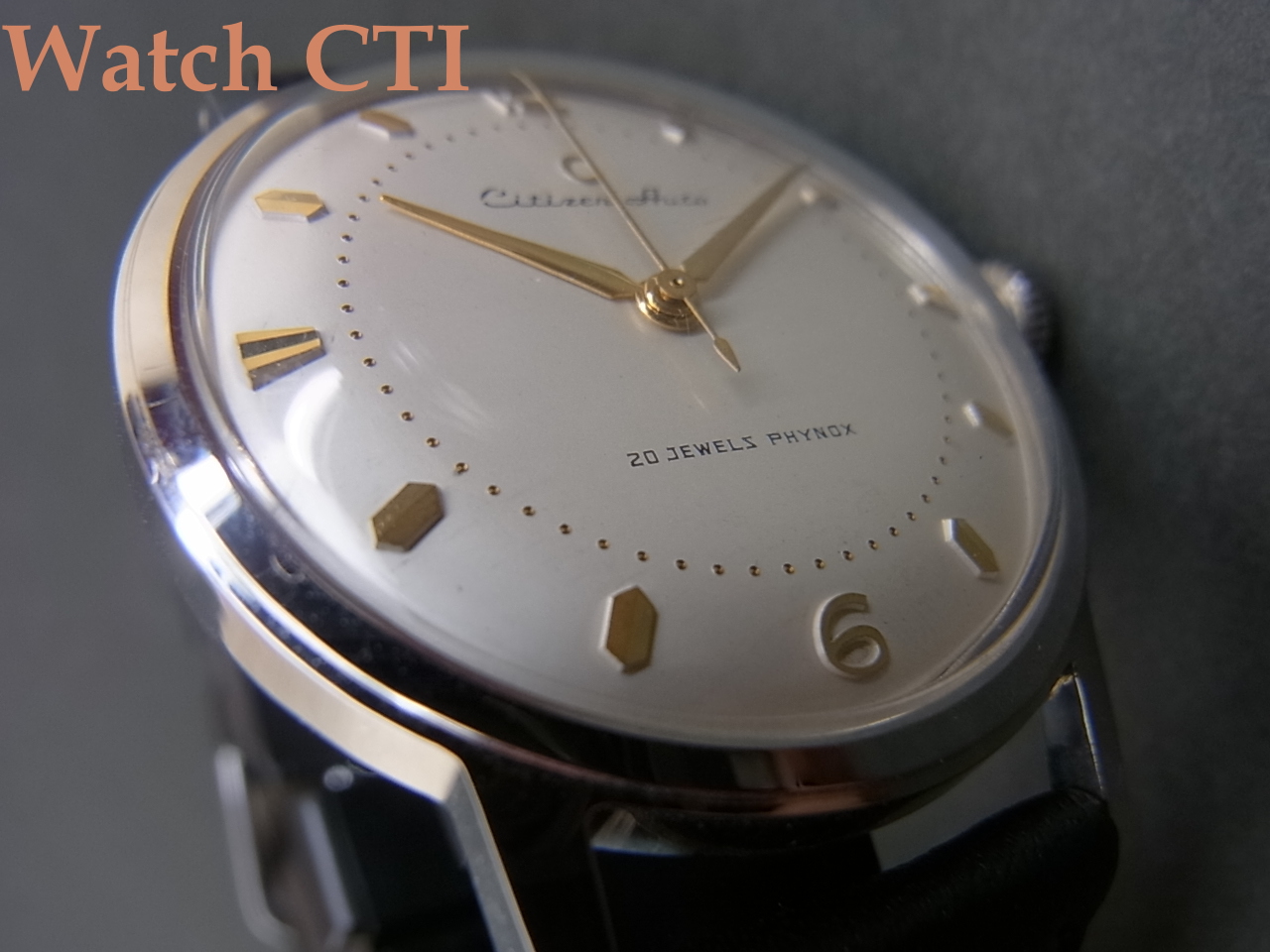 デッドストックの未使用品で間違いないと思いますが、文字板のCitizen銘プリントの「C」位置にこすれ、2個目の「i」の位置に薄いシミが見られます。それ以外は外装、文字板、機械とすべてが未使用を感じさせるに十分な状態を保っております!!!!シチズン製バブルバックといった感じの機械で大変味がありますね!