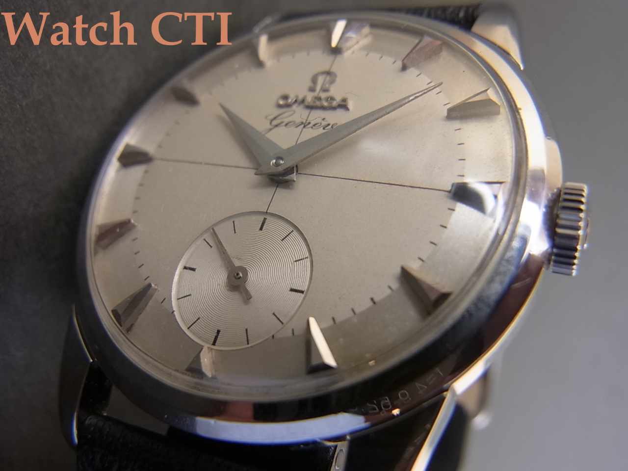 *今回入荷の「ジュネーヴ」は50年代にデビューしたドレスラインの一本でよりデザインに重きを置いたモデルですが、どうでしょう、このフェイス!!いかにも50年代的な太くて短めな「くさび」型インデックスが素晴らしい表情を造りだしております!さらにはグレーとシルバーのツートーンダイアルが濃いヴィンテージテイストを醸し出しておりますね!!!!いやぁ~素晴らしい!!フェイスを見ているだけで「にやにや」してきてしまいます(スミマセン)。