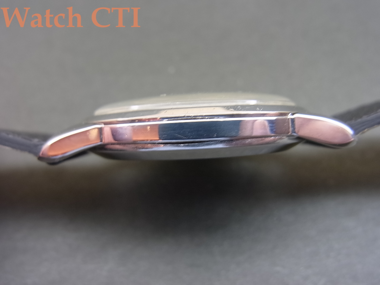 *状態ですが、ケースは全体に極々軽めなポリッシュが入っているようですが、シェイプを崩すこともなく、太目なラグもしっかりエッジを保って残っておりますね。ダイアルもわずかなシミが外周寄りに見られる箇所もありますが、画像でも気づかない程度かと思います。機械もオーバーホールしたてで好調です。ベルトは最近当社でよく装着しているベルギーLIC社のマドラス(山羊)素材でこの年代のモデルにはベストマッチ!!残念ながらオメガ尾錠純正はついておりません。