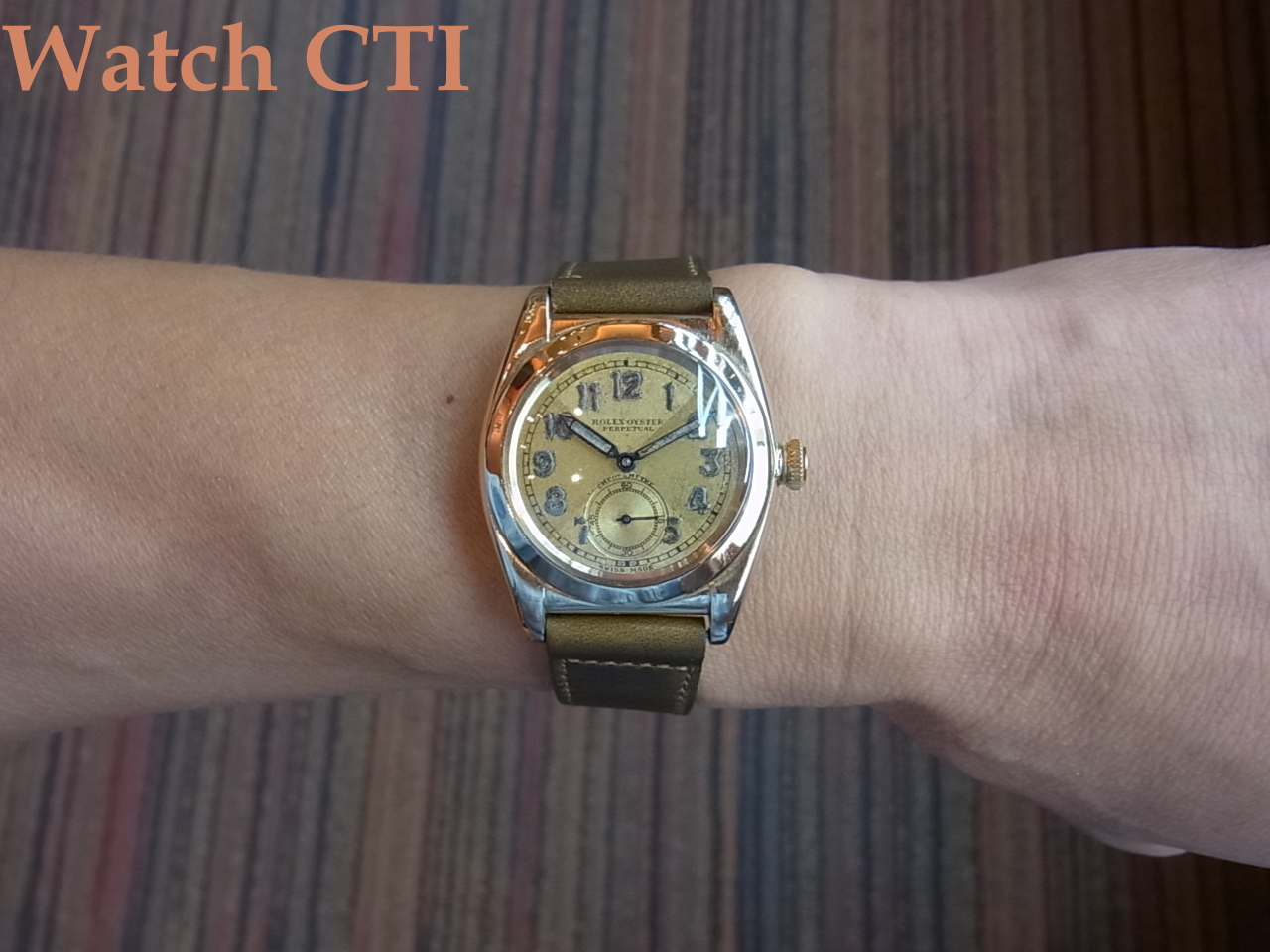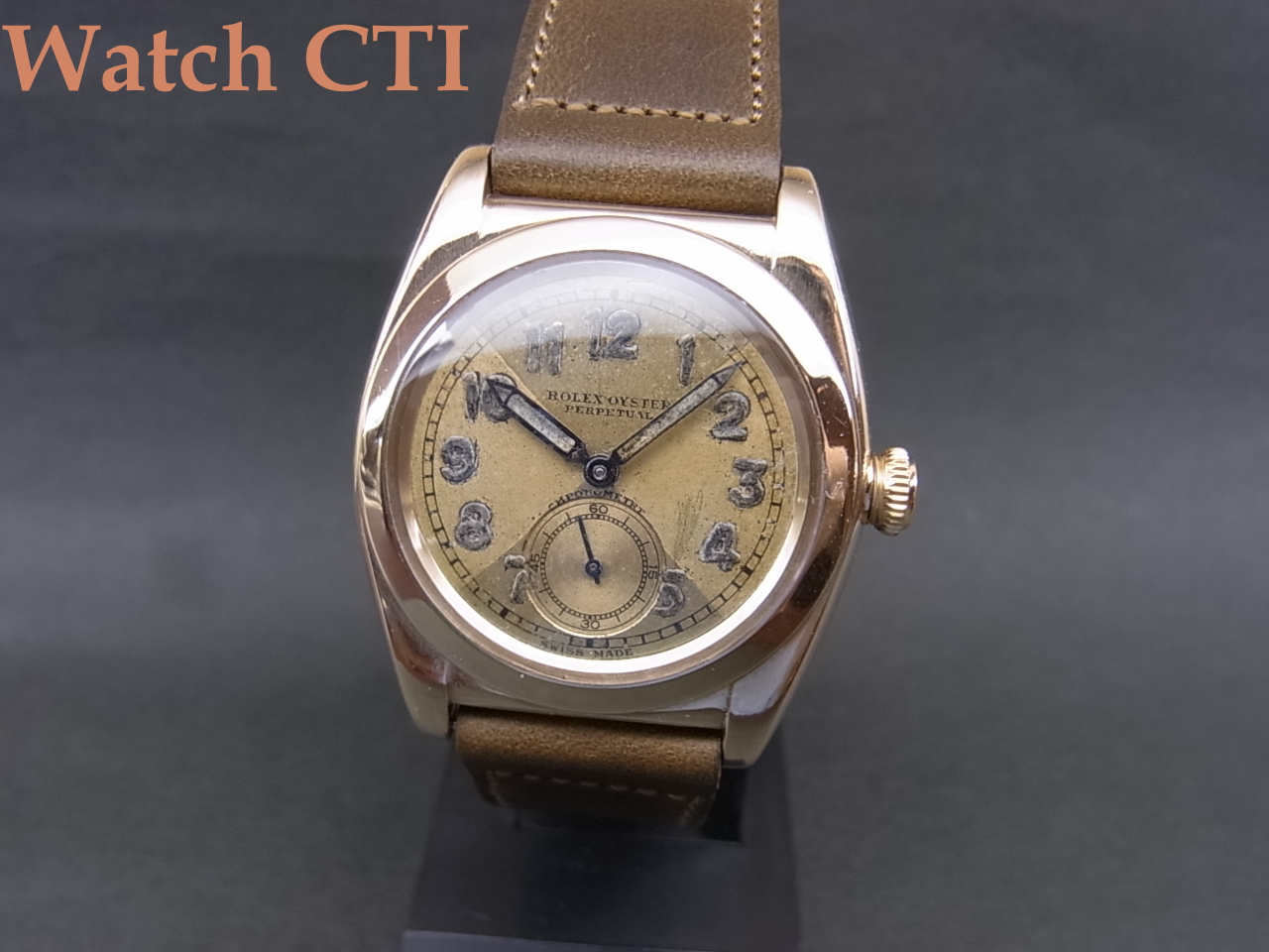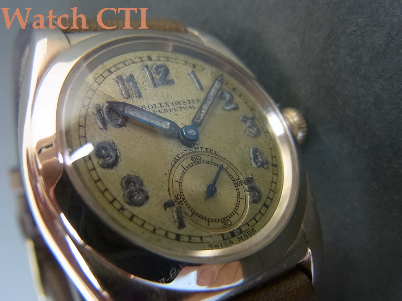 *全体的には如何にも30年代を物語るクロス入りの全アラビア夜光ダイアルで、ペンシル夜光針とのマッチングも良い初期型バブルバックの魅力にあふれる一本です。9金はかなり少ない製造総数だったと思います。独特の薄めな金属の色合いがよりヴィンテージ感を高めますね!