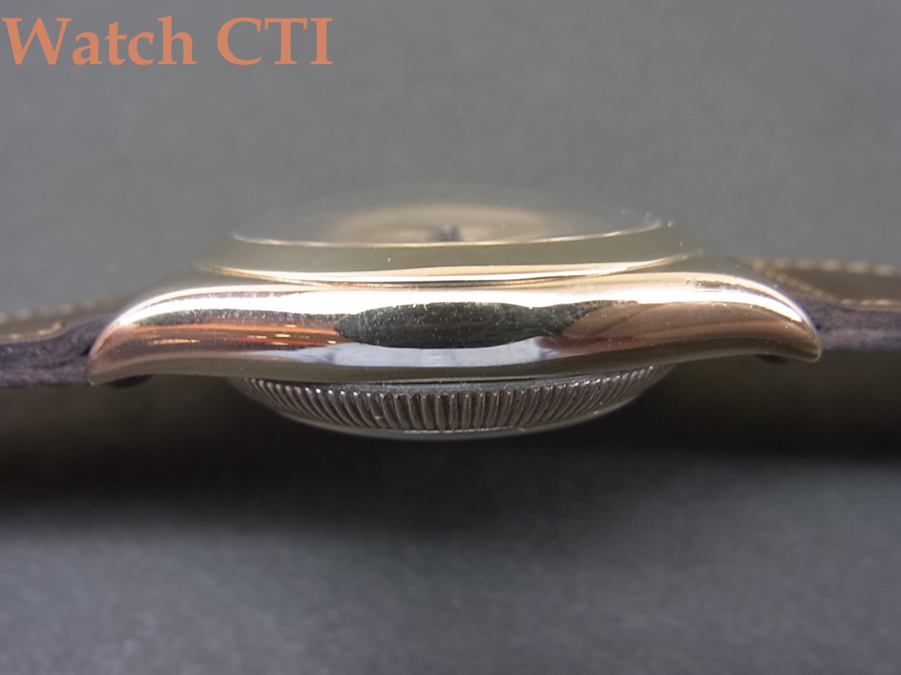 1.ケースは全体に使用されたままの状態で、ケースラグ上面に入るエメリー仕上げもほぼ消滅しております。9金ゆえ固いためケースシェイプ自体はそれほど崩 れずに保たれていますのでバブルバック3ピースの力強さはいまだに伺い知れますね!