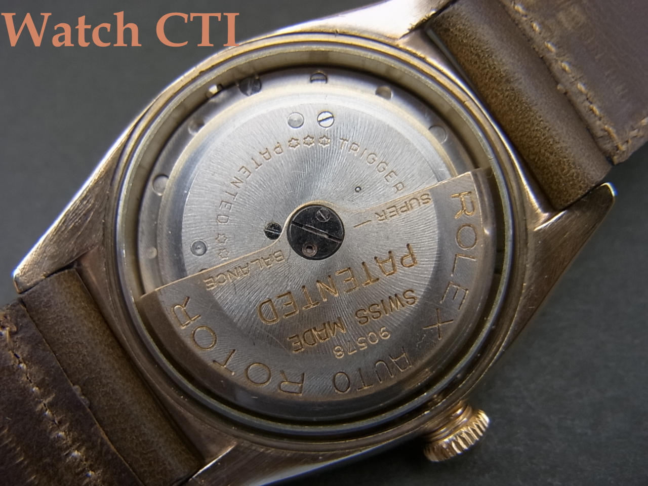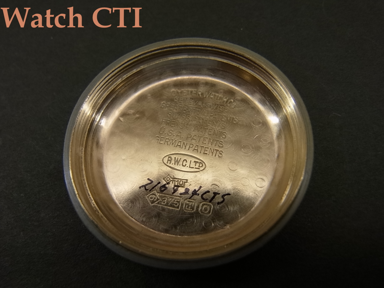 9金といえばイギリス仕様です。実際ケースバック内側にイギリスのインポートマーク刻印が見られ、グラスゴーで1937年に打刻されております。
