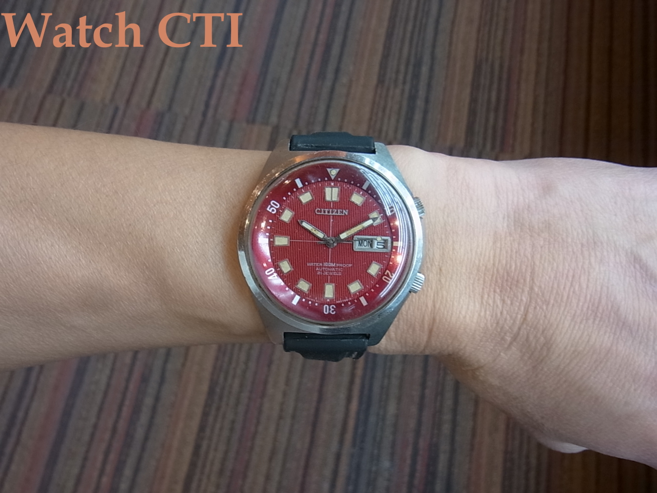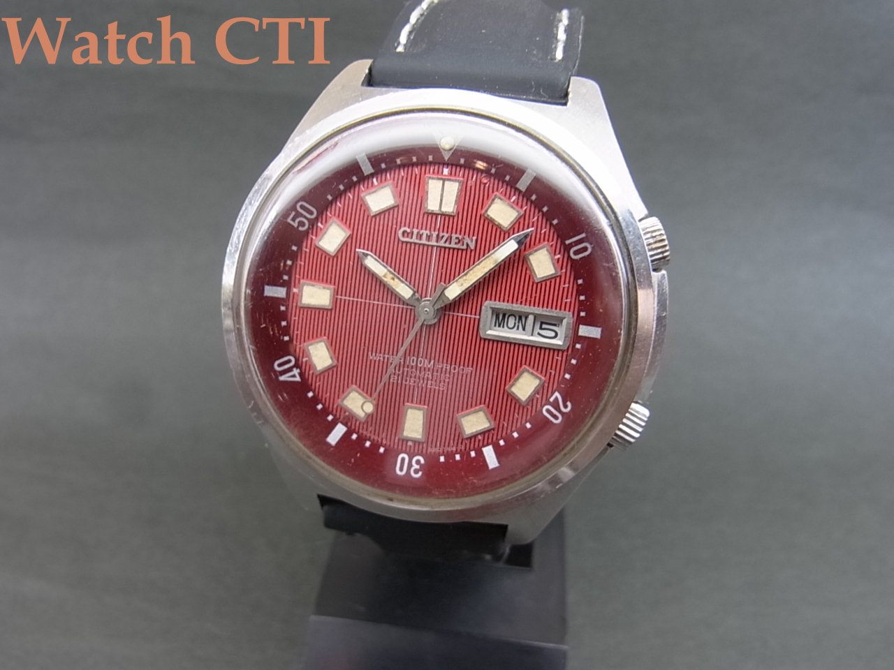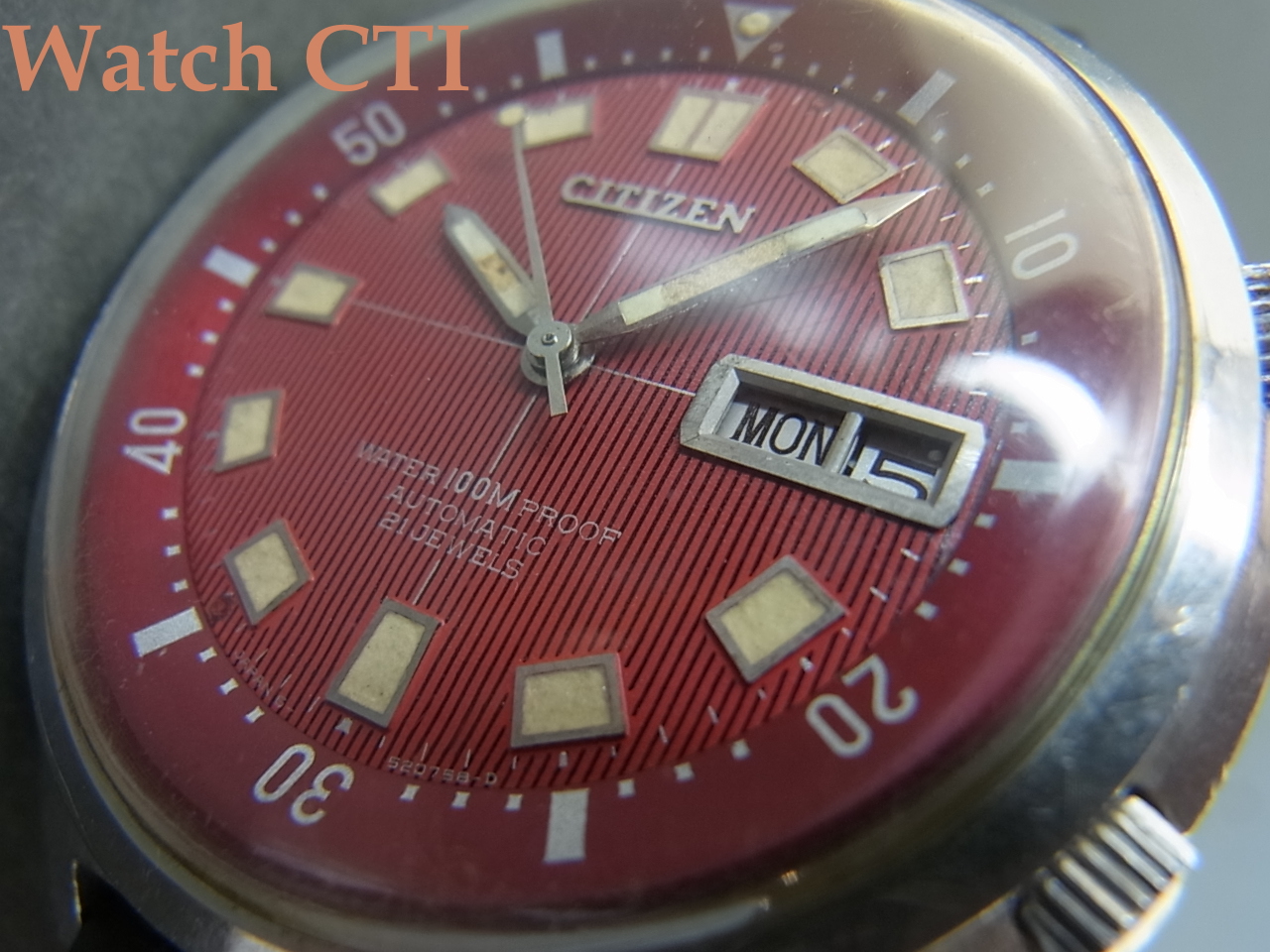 国内ではセブンスターの銘で販売されているモデルと同一のケース・機械ですが、文字板が「赤」….この色は国内では出ていないような気がします…..黒がほとんどで、たまに青がでますが、国内7スターで赤は見た覚えがありません……ひょっとしたら国内ものでもあるのでしょうか??いずれにしましても、現品は海外仕様ですので国内ペットネームである7スターの表示はございません!