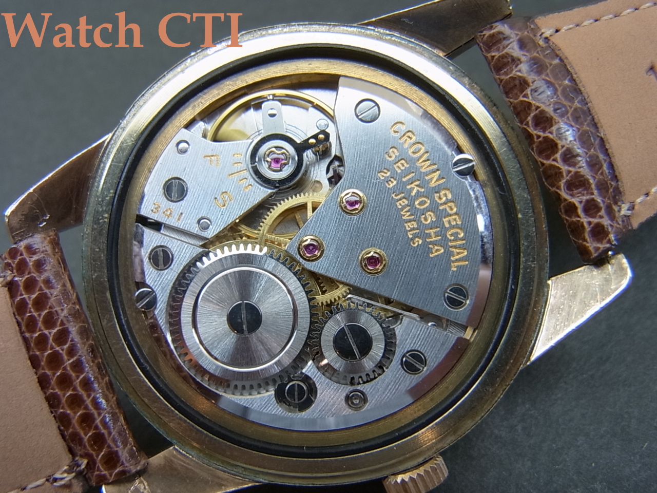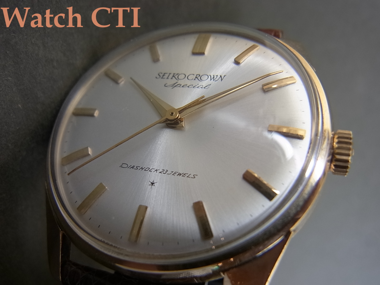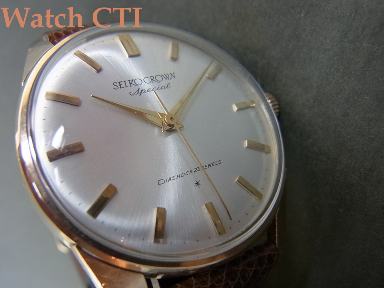 *クラウンスペシャルの機械はその銘の通りで、名機12型クラウンを特別調整して23石としハック機能を追加したもので、まあ、成り立ちとしては「プチ・グランドセイコー」となります。当時は販売も非常に好調で、実力と人気と価格のバランスが最も取れた一本であったようです。そんな点でも長く使いこまれた品が多い故の文字板焼けやラグ歪みもあったのでしょう……。