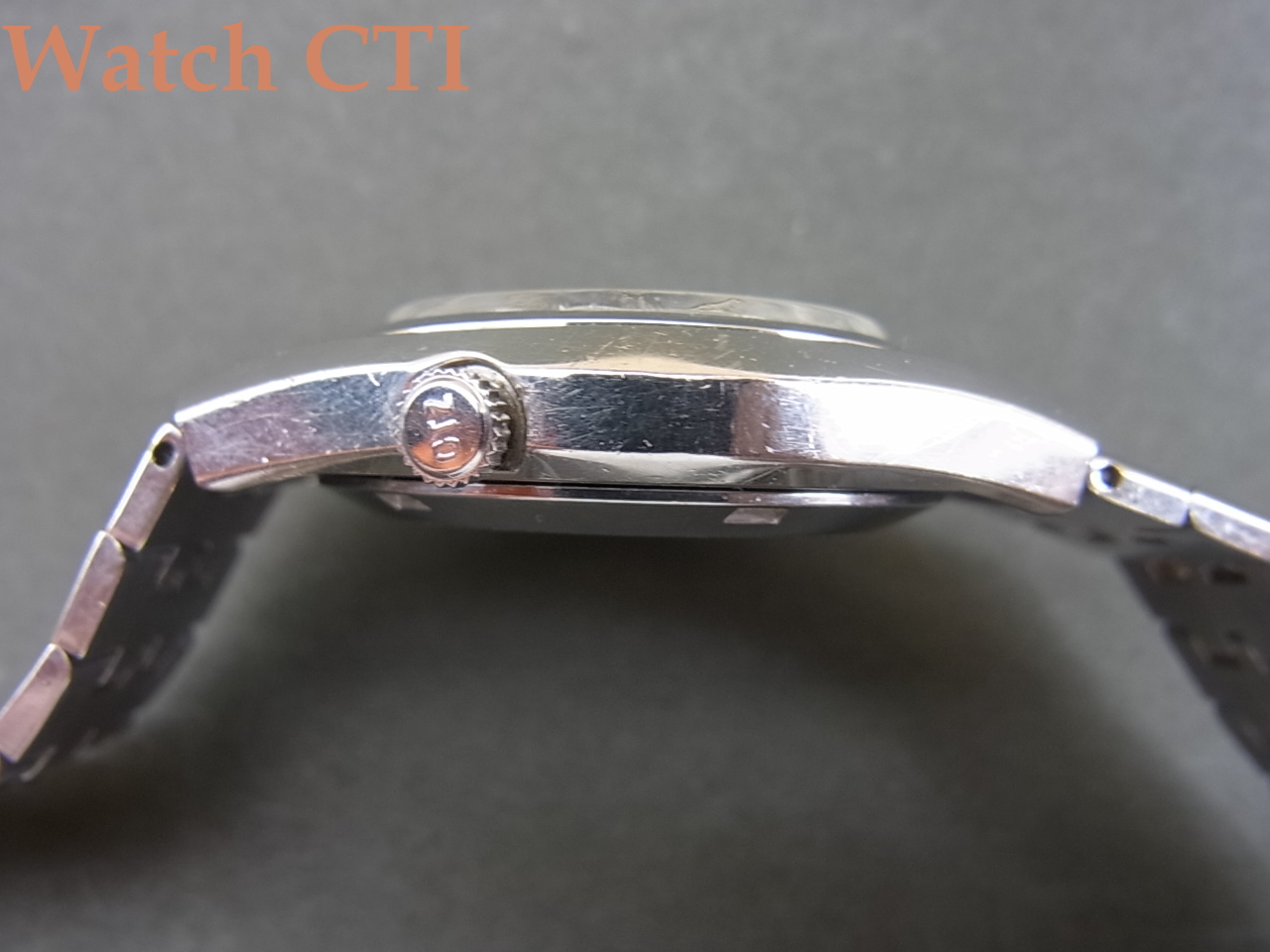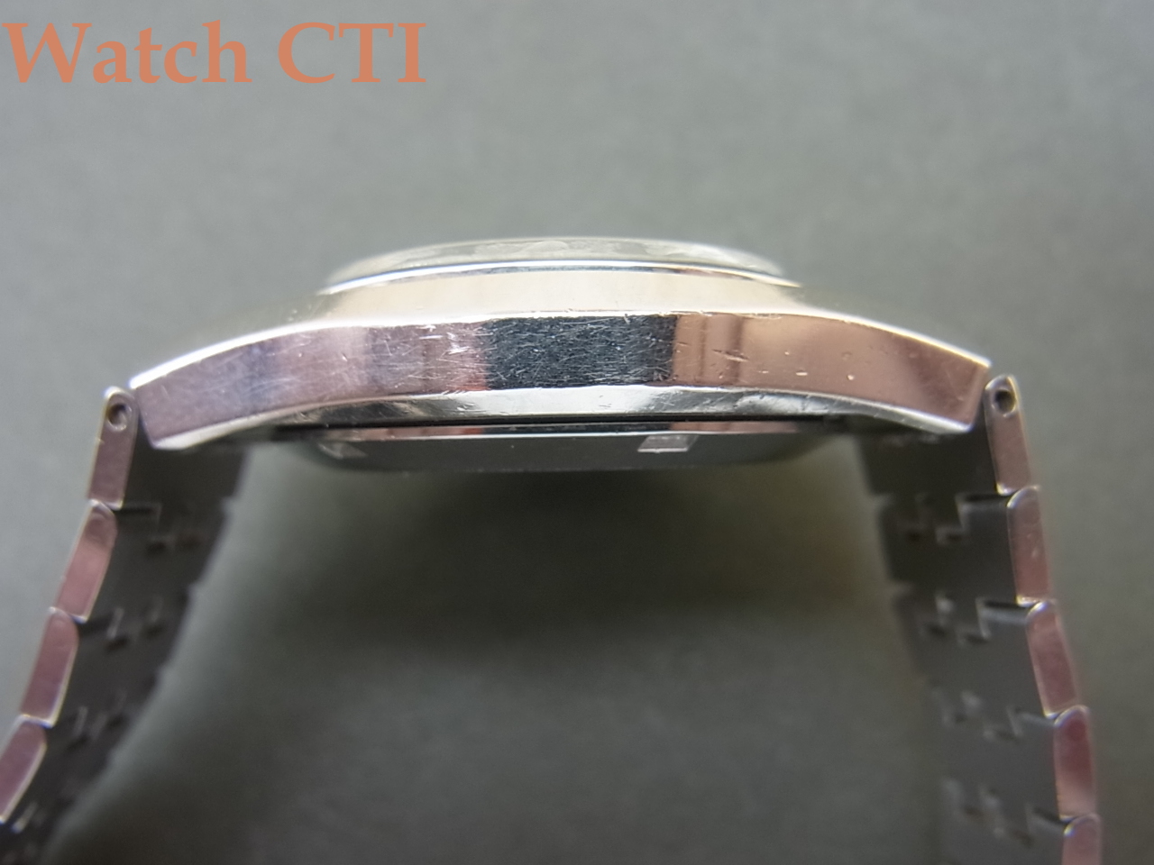 オーヴァル形状のケースデザインに斬新は横型バーインデックスで目を引く製品に仕上がっており、この手の好きな方には大変魅力的な一本ではないでしょうか?ミネラルガラスに傷はほとんど見られず、割と直近に新品交換されたのかもしれません。他の状態も使用されたままのオリジナルコンディションで大きな瑕疵は見られません!純正装着ブレスも中々の存在感です!
