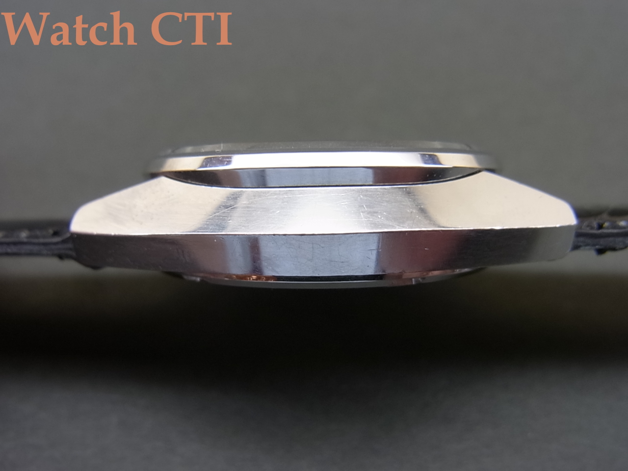 ☆当社で勝手に命名しましたが、観ての通り、ケースラグ部分が独立しておらずに完全におおわれておりますので、ロレックスなどの同様ケースの通称にちなんで呼称致しました。このタイプのケースは文字板直径が8000番台のもで通常の7000番台より一回り大きいため、見た目にも迫力があります!典型的な70年代デザインですが、諸々のごちゃごちゃしたデザインが多い中でもこれは極めてハンサムな一本といえるでしょう!
