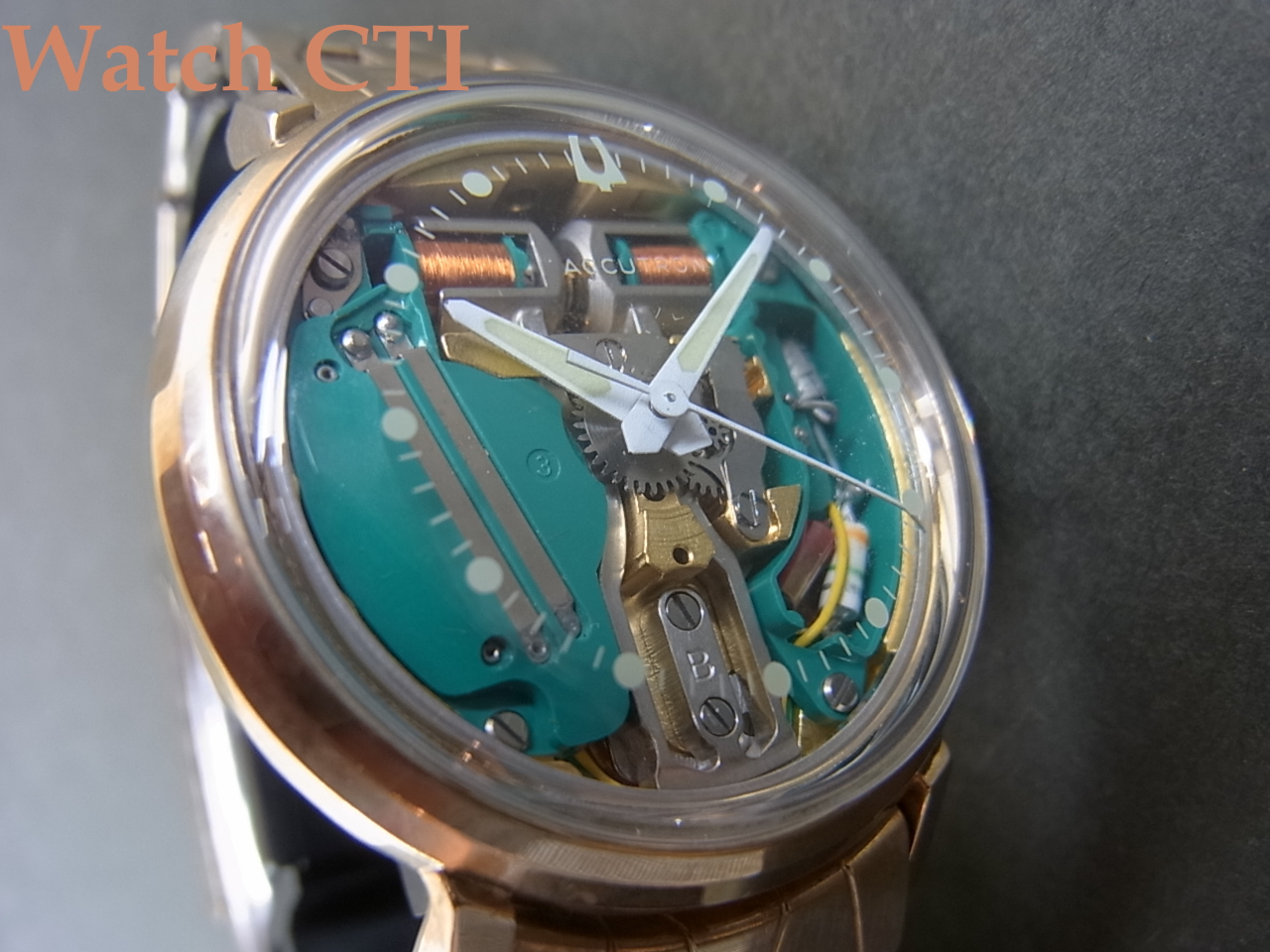 *気になる電池ですが、純正の1.35V水銀電池が入手不可能になって久しく、以前は1.55Vの小さいサイズの電池にセルを付けてサイズ合わせして対応しておりましたが、最近は補聴器用などに使われる「空気電池」という電池が1.4Vの電圧でアキュトロンの機械に優しい仕様となっており、現在はこの空気電池を入れております。(サイズはPR41がフィットします)