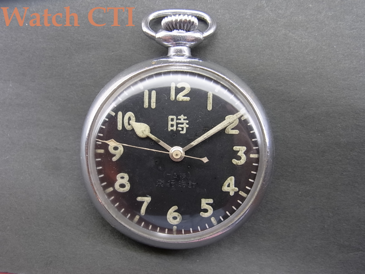 本来は戦闘機のコクピット取付用に開発されたはずですが、このように通常のクロームメッキ懐中ケース(ローレット(捻じ込み)式ケース)に入れた品もありました。パイロットが搭乗引退する際に外して持ち出し後日ケーシングしたという逸話も聞かれますが定かではありません….。歴史を語る製品です。