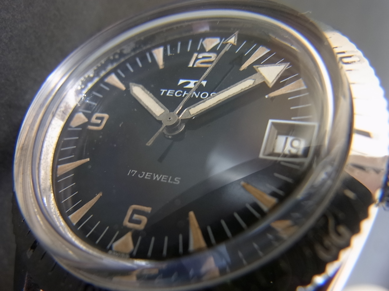 スイス各社に稀にこの手巻ダイバーがあるようで、先日も某アメリカのオークションサイトにチュードルの手巻サブが出ていて恐ろしい価格になっていたのを目撃しましたが、このテクノスだって雰囲気は全く負けてません。ぜひこの素晴らしいヴィンテージダイバーのテイストをお愉しみください!