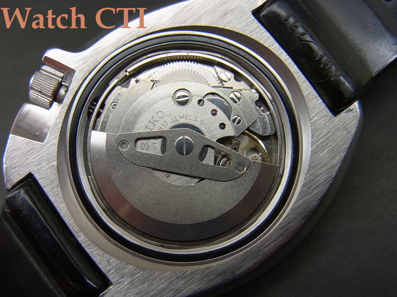 *インデックスの夜光は極々一部に例の「黒いカビ」のようなシミが出ておりますが、相当少ないほうになります。SEIKOのブランド銘板はメッキが全体にマット状に曇ってきております。また、これまた黒いカビ状の腐食が出ている個体が大多数な長短針の夜光ですが、、、これは違和感のない夜光色で入れ直ししております。サファイアになって透明度が増した分汚れやシミはとっても目立ちますのでこの部分の経年劣化はちょっと見られない程度でしたので入替ております。