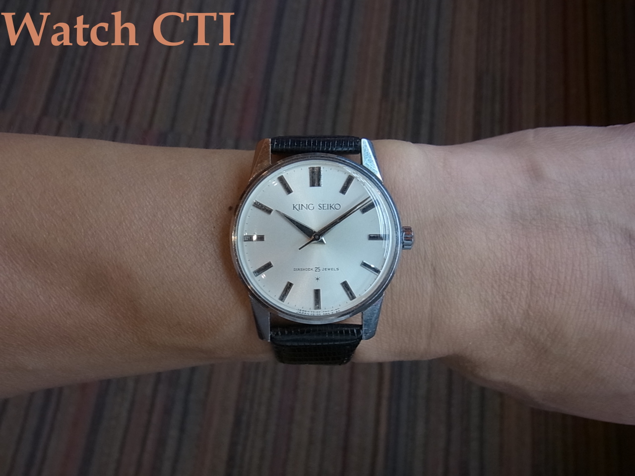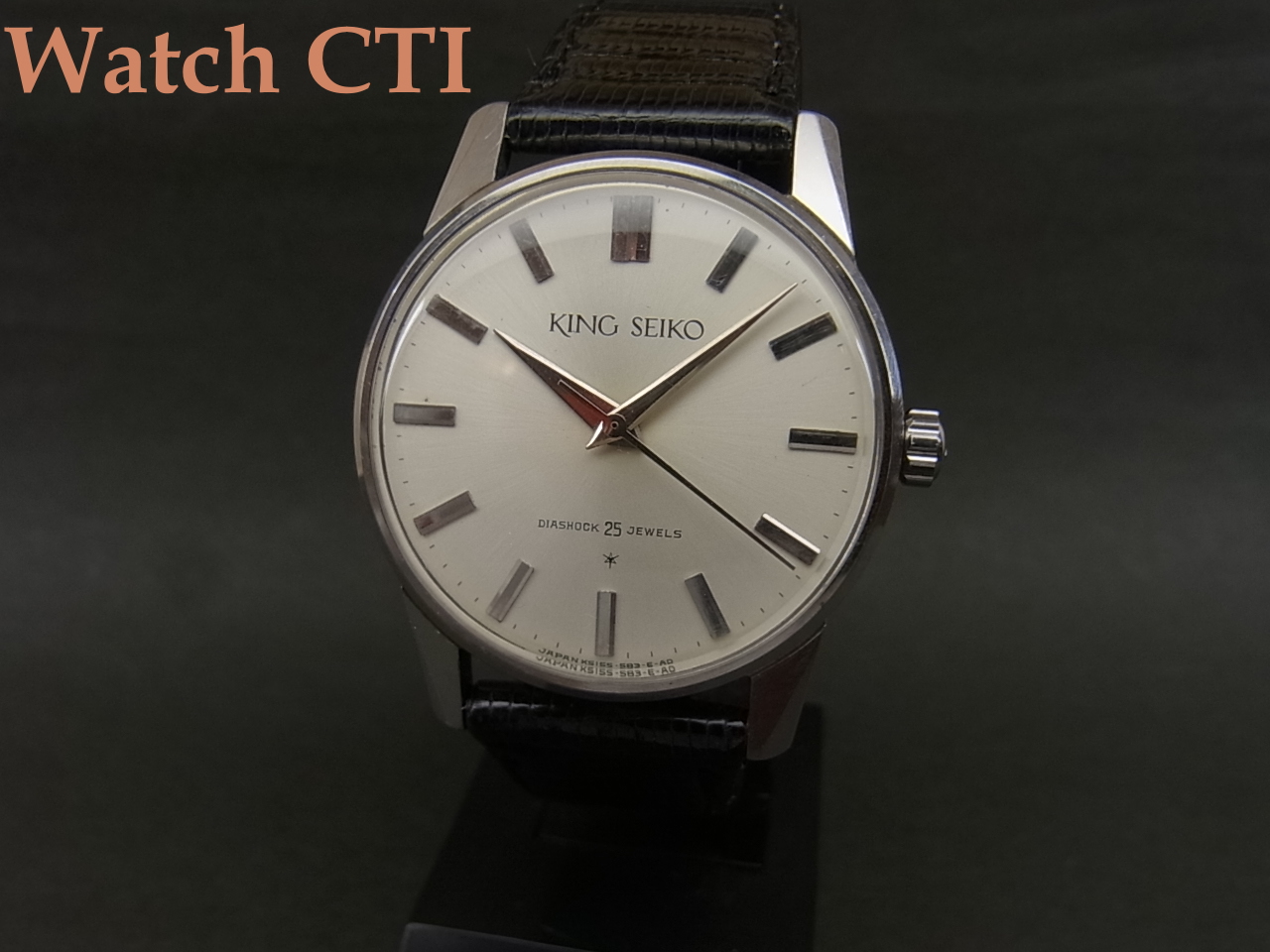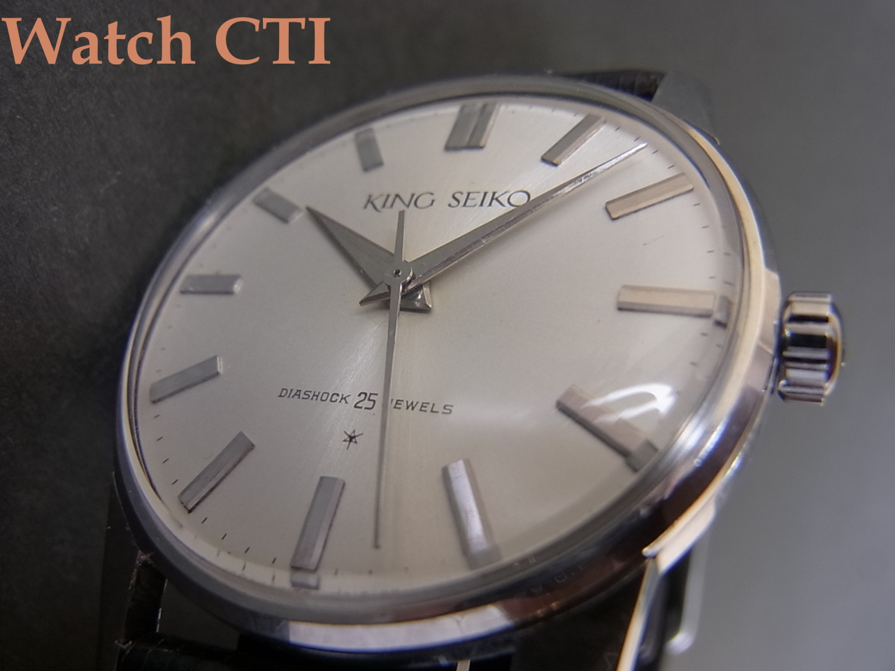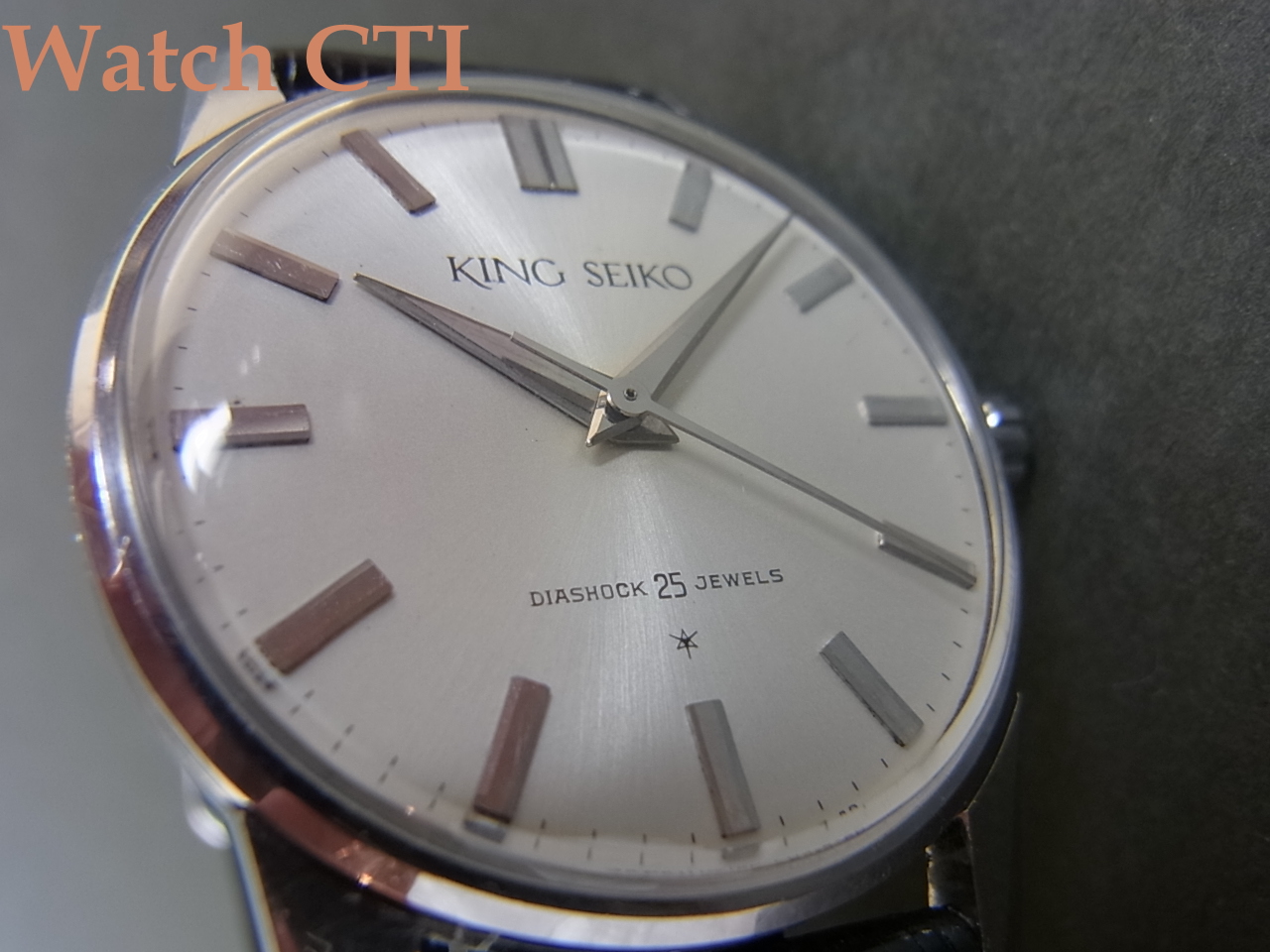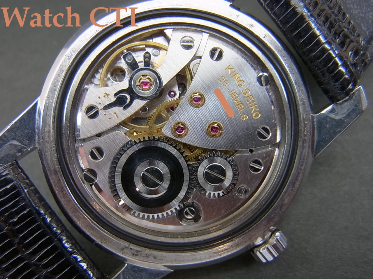 ムーブメントはご存知クロノスをベースに高精度チューンした初代キングセイコー。11型のロービートで、テンプ受けのS型ブリッジが美しい!