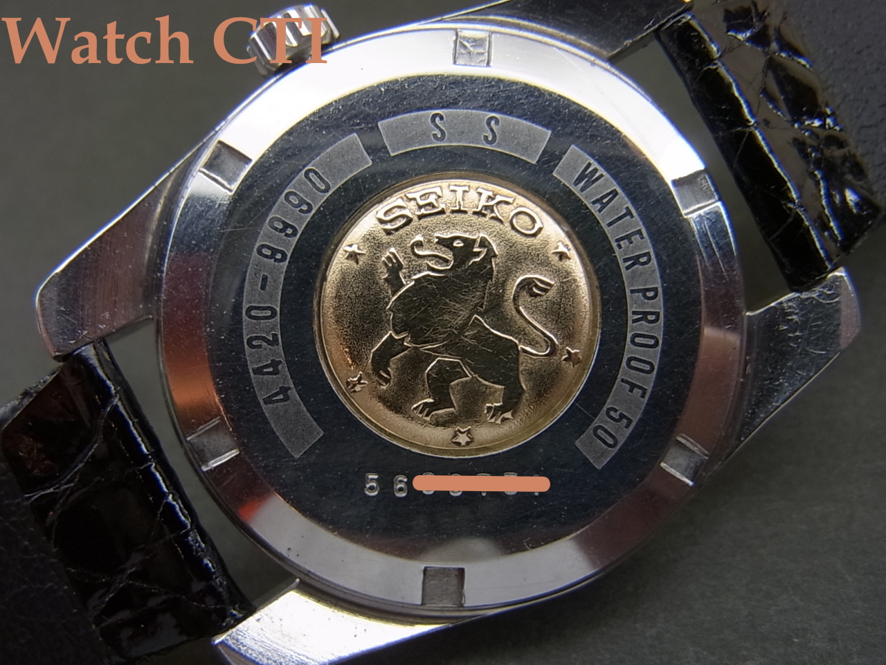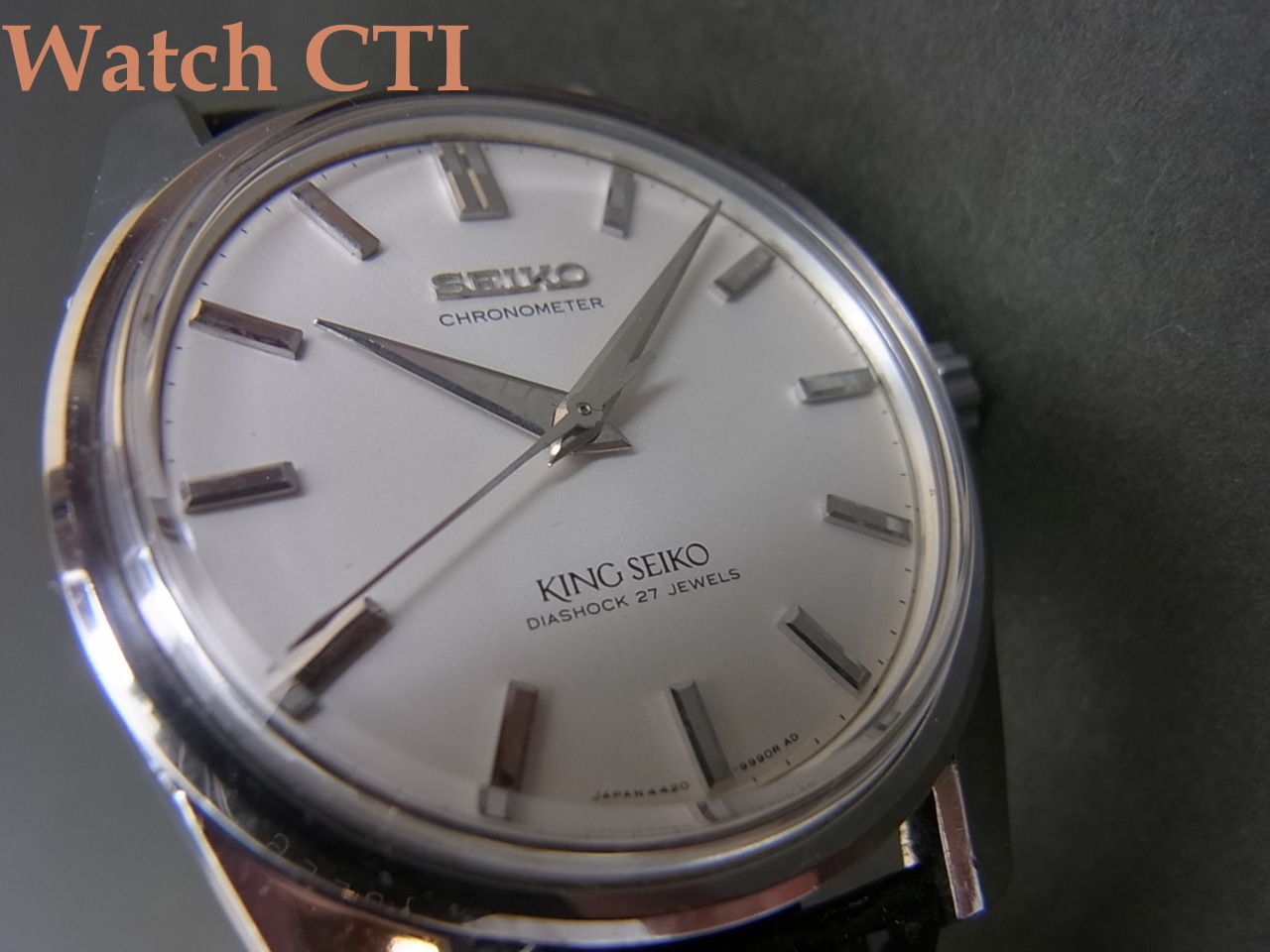 文字板のブロック体CHRONOMETER表記は後期型で、初期型には筆記体で入っていました(希少)。また、秒針の先端が銛のようにわずかに膨れた形状は、精度への並々ならぬ自信を表出していたように感じますね!