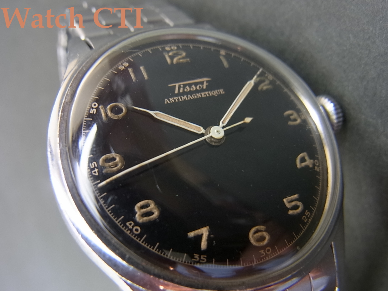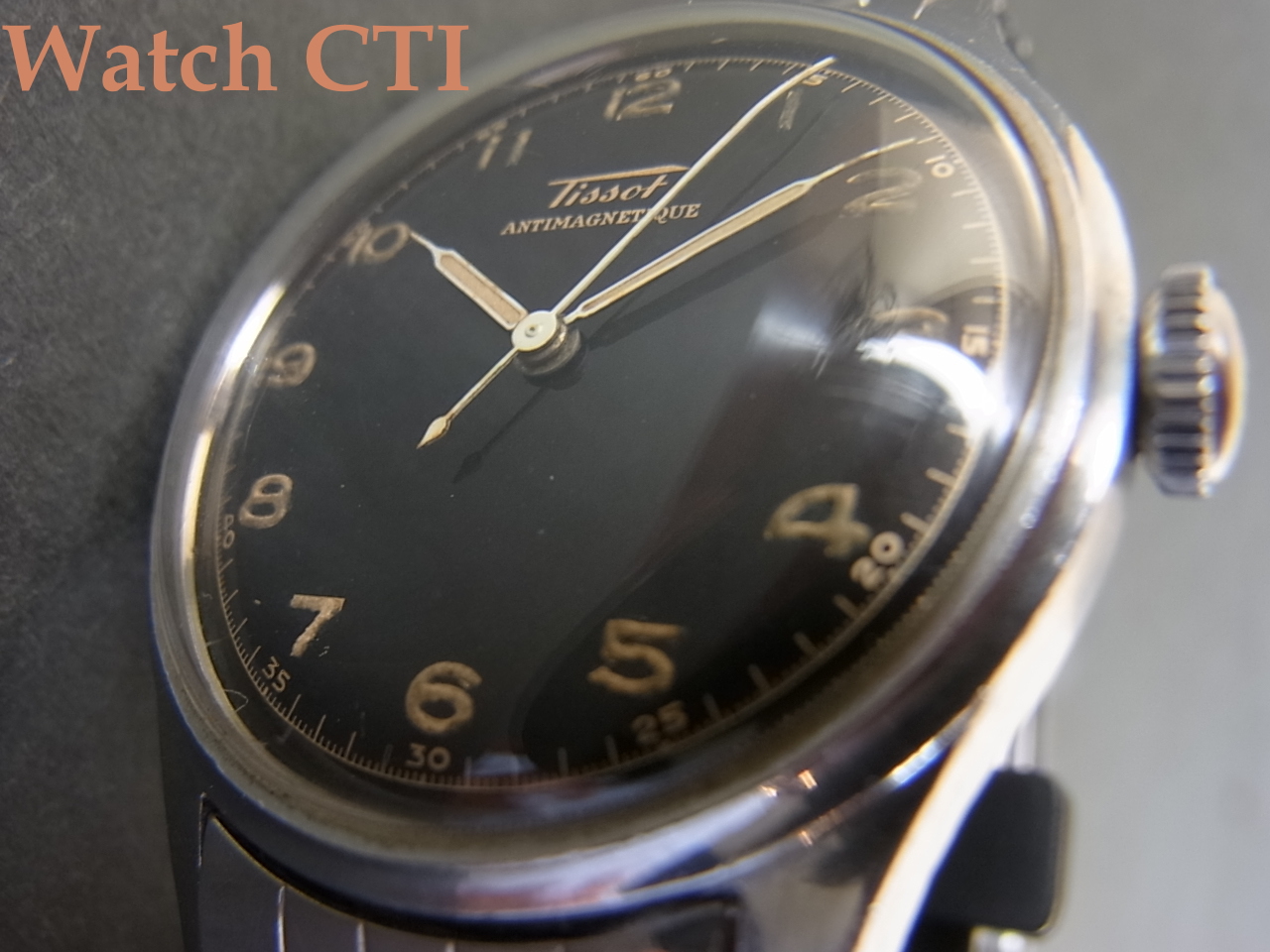 *ブラックギルトダイアルはピカピカでほとんど経年変化ありません!オールアラビックの夜光には雰囲気の出た経年変化が見られます。夜光自体も当時のオリジナルと考えられます。