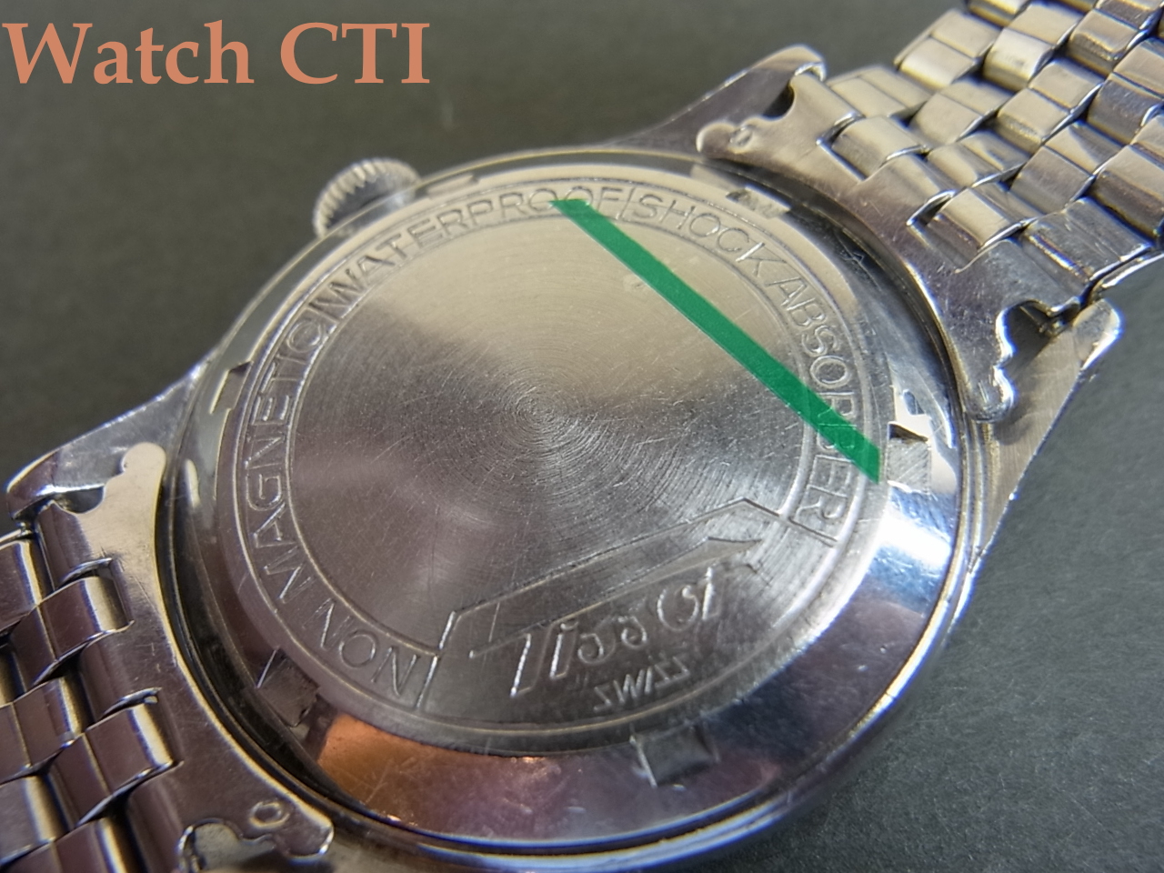 *そして、なんと純正ティソ銘入りのゲイ・フレア製エクステンションブレスレットがついております!! 全長が若干短めですが、現在入手できる汎用の延長プレートをバックル部分に追加して全長を稼いでありますので大概の方には問題なく装着できると思います。て組の細めな方にはこのプレートも必要ないでしょうから純正状態でお使いいただけるでしょう!