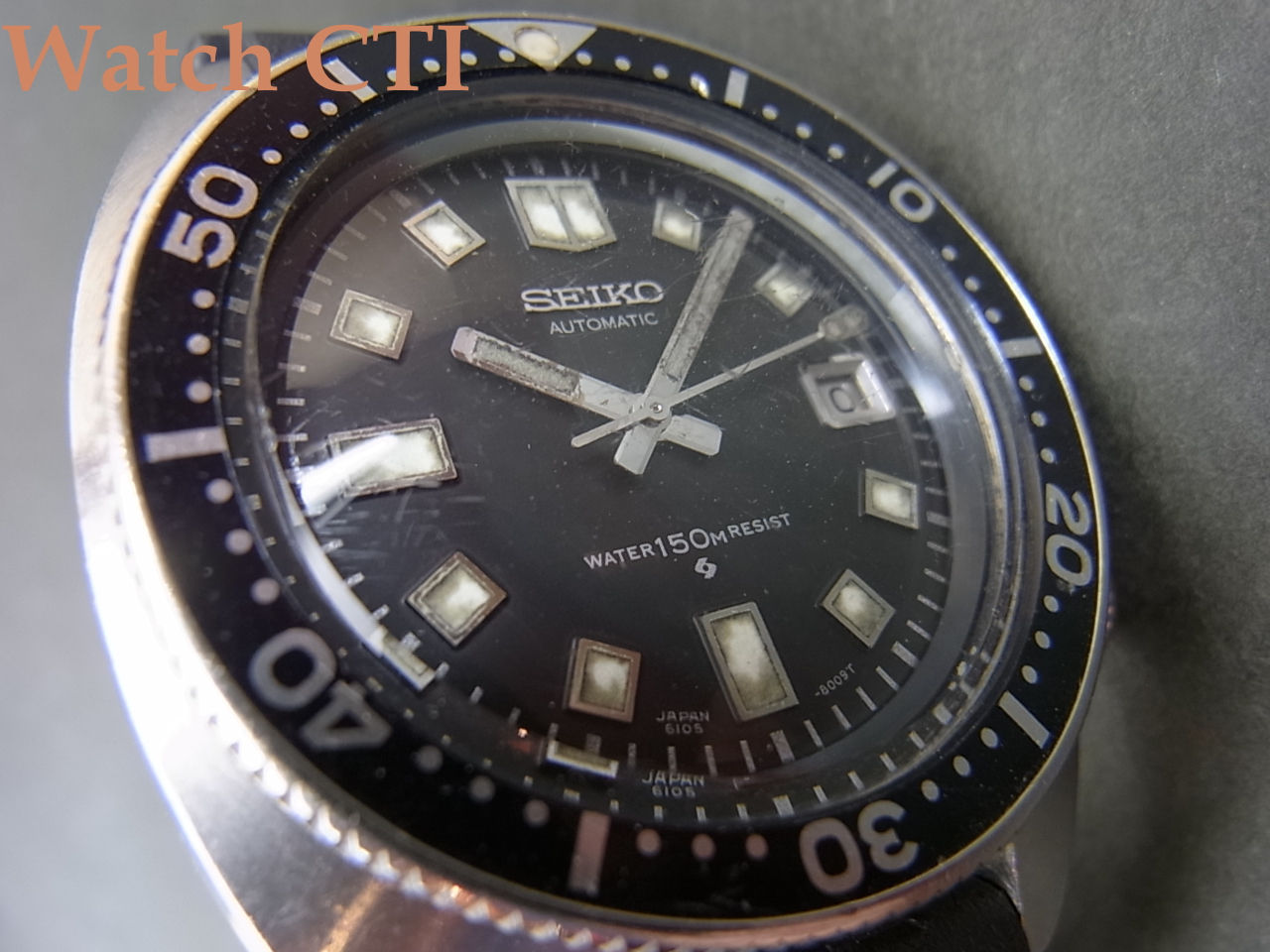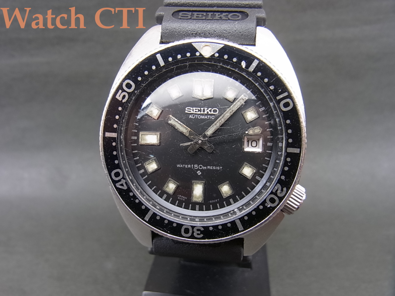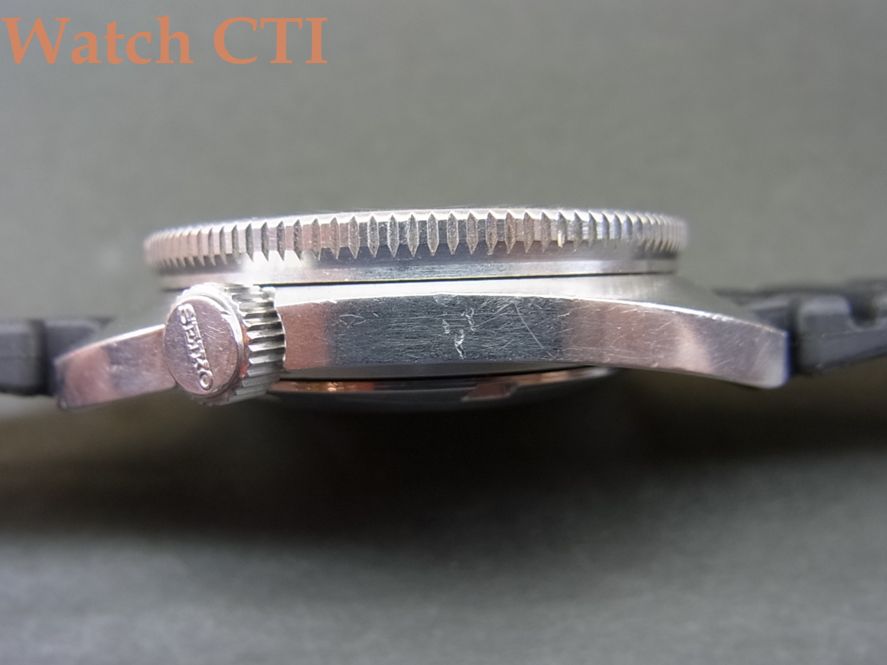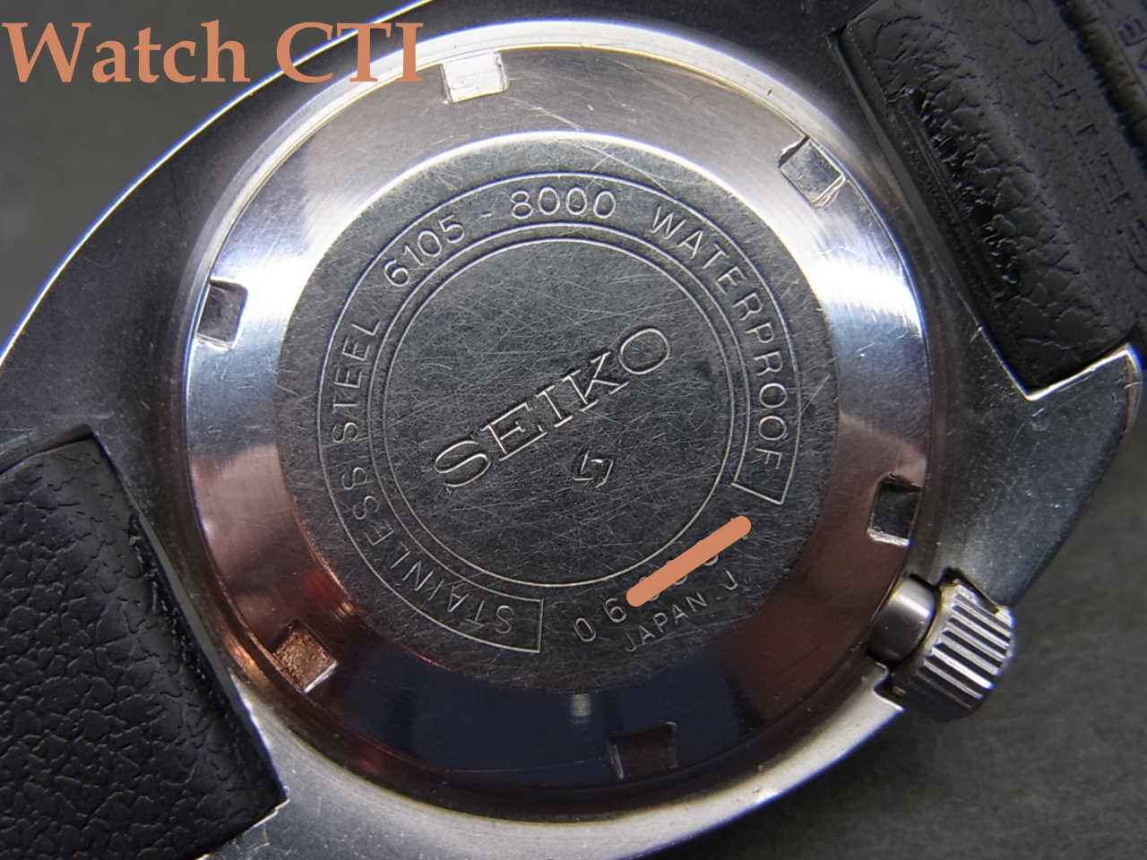 ガラスにもスクラッチ傷が見られますがオリジナルの様です。社外のミネラルクリスタルでしたら手持ちがありますので工賃込実費10000円追加で交換いたします。なぜか1968年製ケースが圧倒的に多い前期型にしてこの1970年製で6105B搭載モデルは相当希少かと思います!!