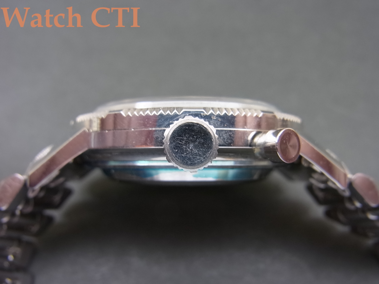 ☆デッドストック品ですが、保管の状態はそこそこであったようで若干の表面的擦れなどありますし、ケースバックの防傷コートは平面的にはほぼ失われております。しかし、実用使用されていないことはシャープなエッジやステンレス表面の輝き等で明らかです。プライスタグと当時の防水を示すタツノオトシゴタグが残っています!