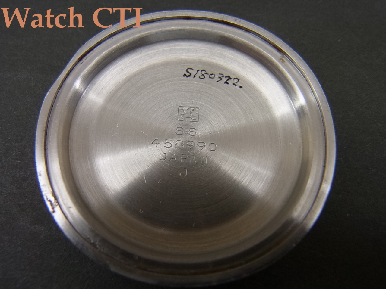 ケースバックは「たつのおとしご」仕様もあり、当時の東京オリンピック開催の10月あたりを境に、聖火/たつのおとしご、と別れるのかと思いましたが、どうもそうでも無いようで、仕様違いの区別が明確になりません…….現品は1964年9月製造ですので、しっかり東京オリンピック直前ですね!