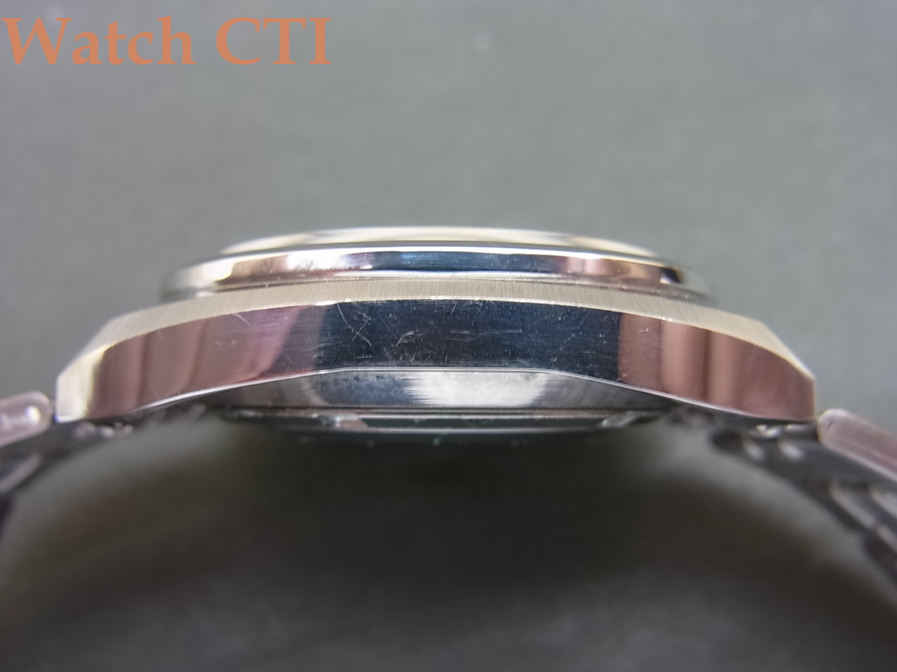 今、ヴィンテージ品としての評価は「使い込まれていない品」という点で高評価が付くのであり、売れ残っていた時計店では棚卸されて以来長い年月を経て当然「経年変化」がでています。中には、棚卸後にパーツを取られてドナーになってしまった個体だって出てきます。そういう点でデッドストック品には使用された痕跡はなくとも棚卸以降の時計店での保管状況次第ではユーズド品にも劣る品だって実際にはございます。ただし、私たちが仕入れるのそんな中でもできる限り優良なオリジナル状態を保っているものですが、ほぼすべての個体で何らかの経年変化痕跡や手を入れた痕跡が見られますので「未使用品」とは区別してお考え下さい。宜しくお願い致します。