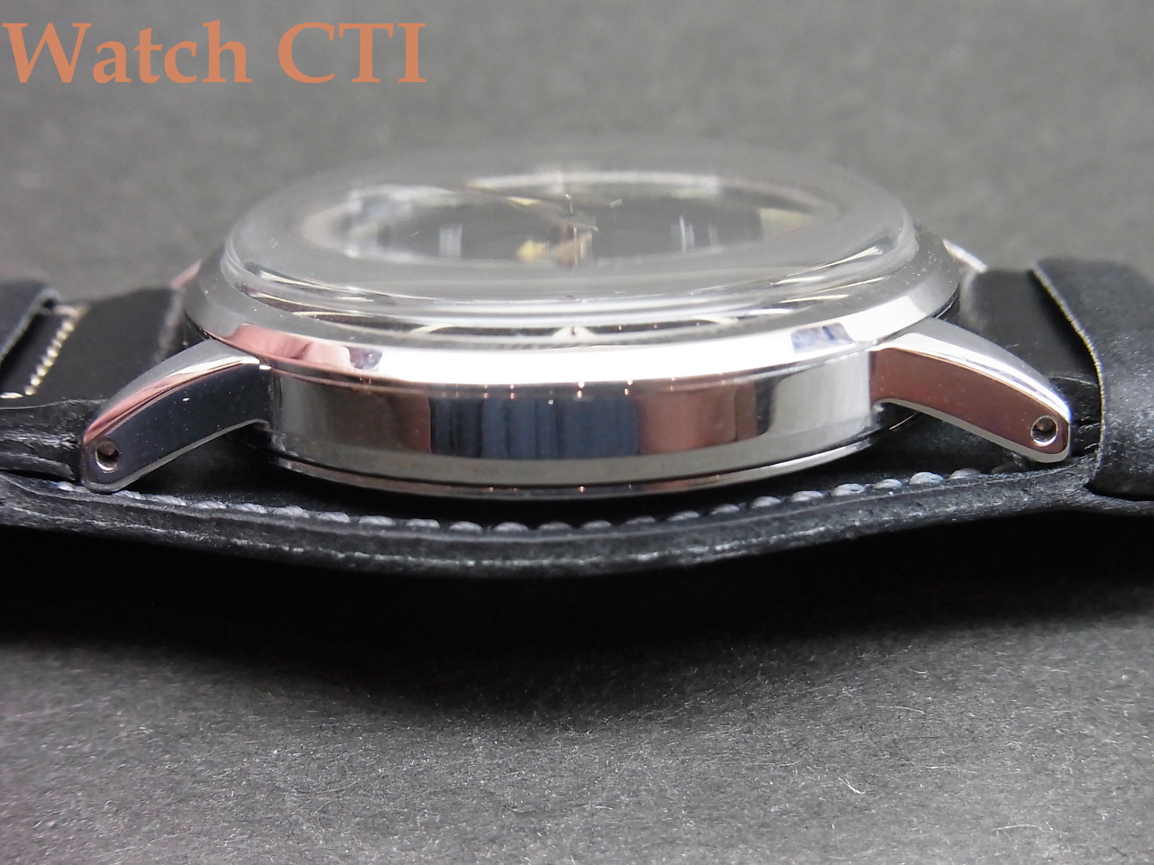 外装ケースに、ポリッシングクロス等で軽く仕上げたとおぼしき艶が出ておりますが、バフマシーンによる機械仕上げではありませんので嫌味なダレはございません。