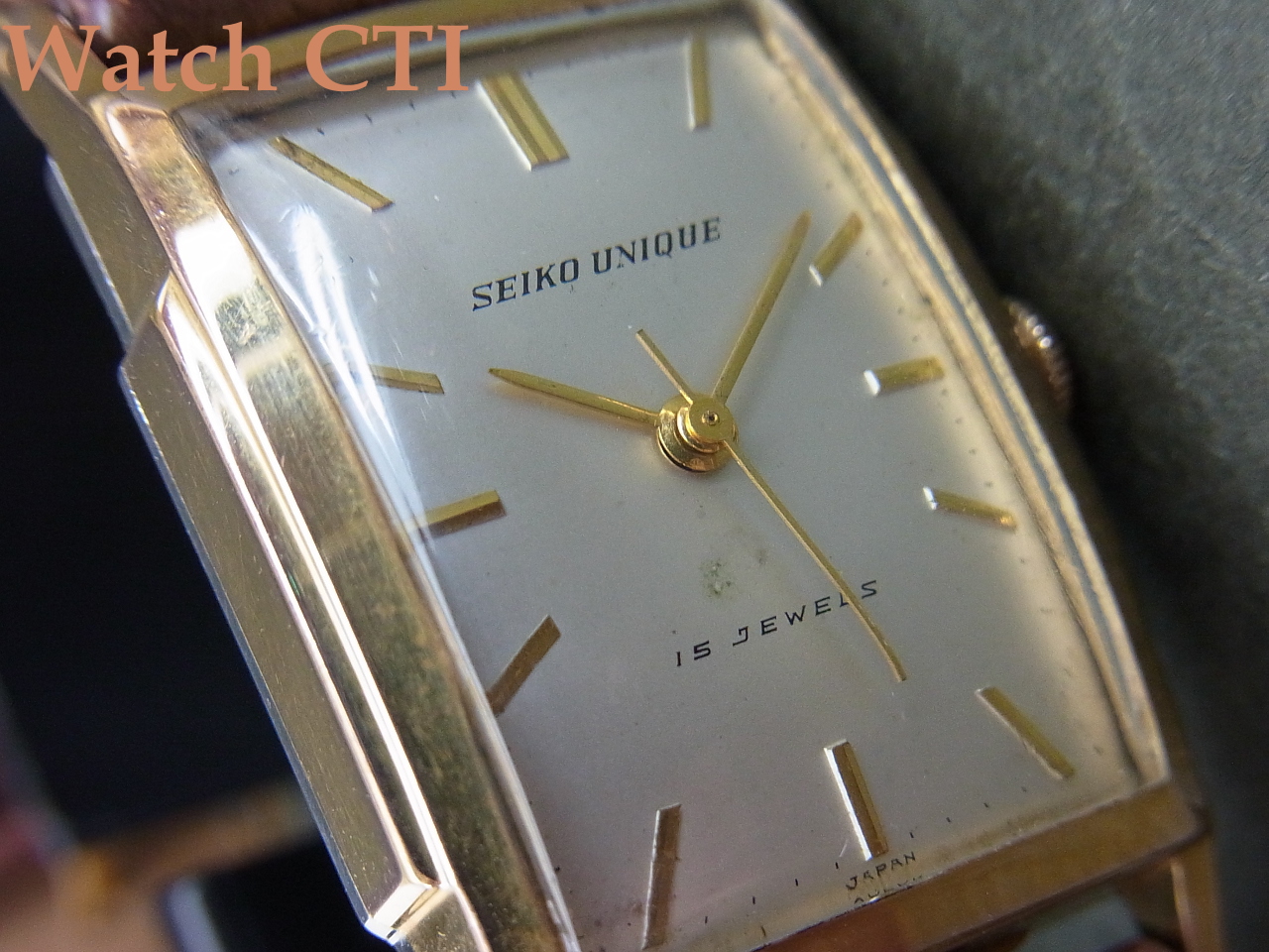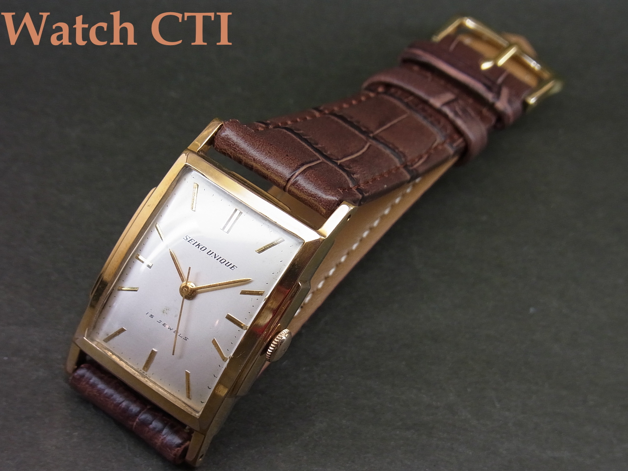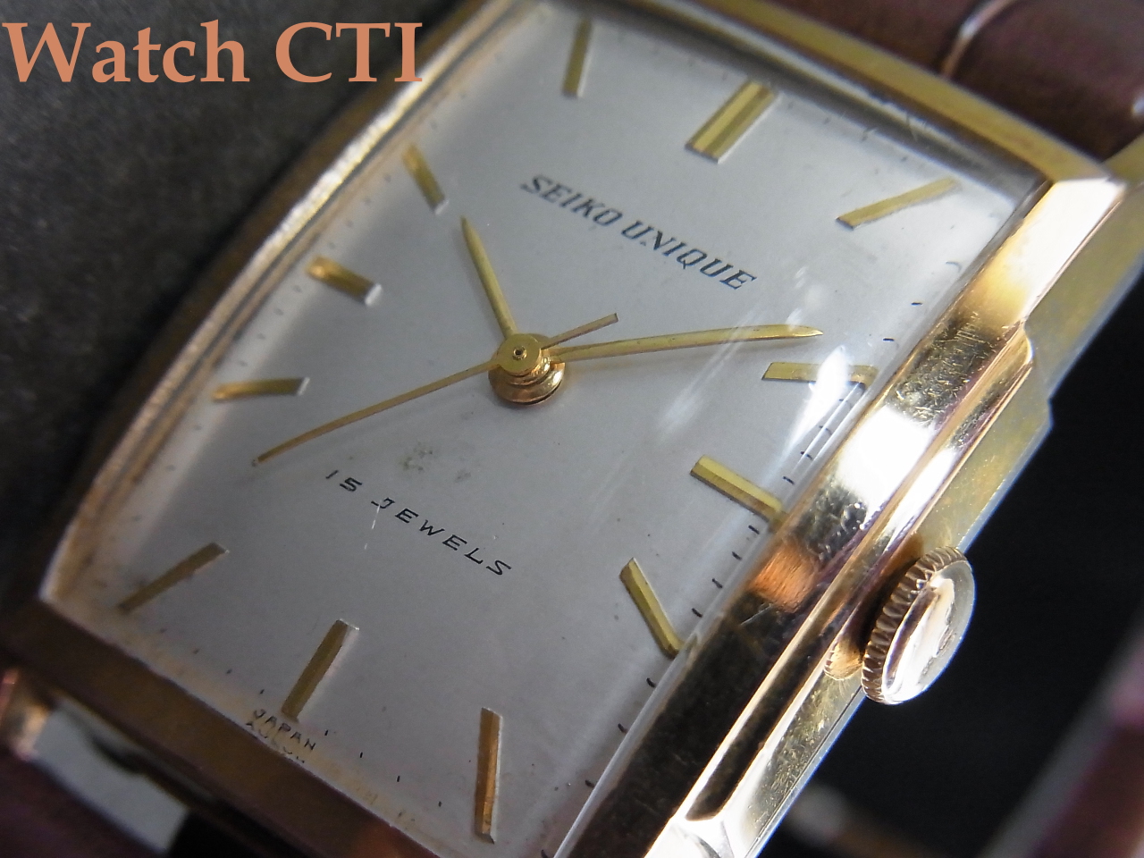 ☆レクタンギュラーケースのモデルは国産メーカーでは可なりの少数派ですが、このUNIQUEはしっかりセイコー自社製ケースで、非常にレアかつ愉しい一本です。よく見るとSEIKO UNIQUEの書体が他のどのモデルにも使われていない書体で、かなりカクカクしているのはやはり角型ケースに合わせたのでしょうか?!