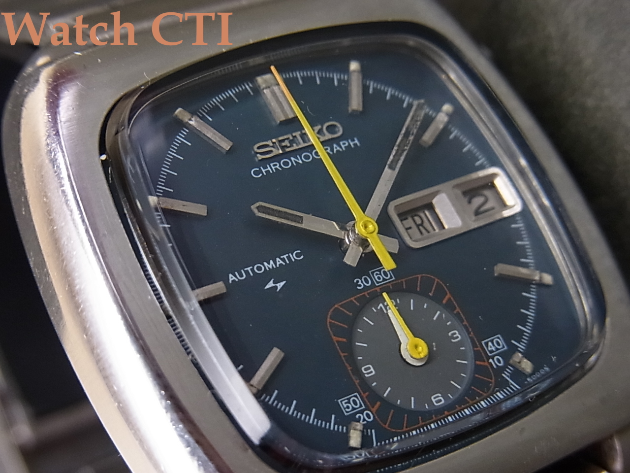 *入荷時に風防(トキライト)に大きなヒビが入っていた為、海外業者から純正新品パーツを何とか調達出来まして、晴れて新品風防と相なっております!!文字板の独特なブルーの色加減がより引き立って見えておりますね!