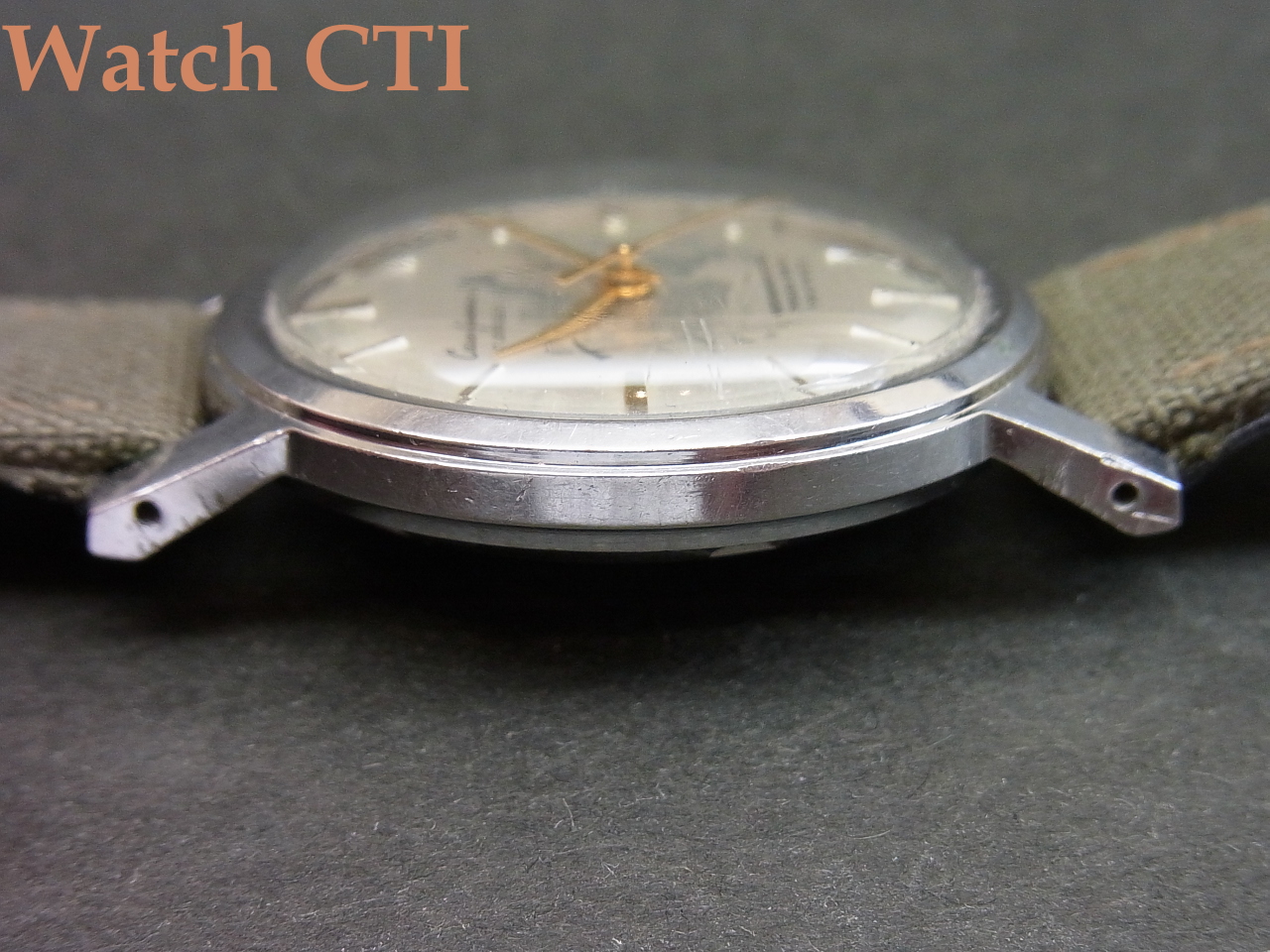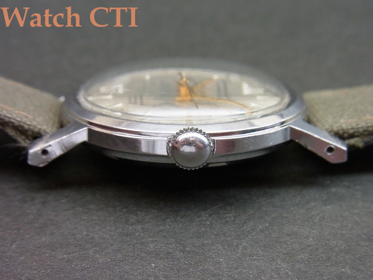 それから、ケースラグですが、ちょっと外側に開いています….これは後からのもので、おそらくサイズの大き目なブレスなりを装着するために施した物かと思われます。あまり気になりませんが、こちらも予めご了承ください。