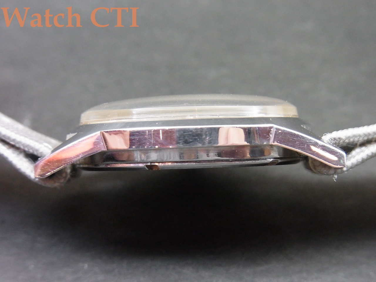 今、ヴィンテージ品としての評価は「使い込まれていない品」という点で高評価が付くのであり、売れ残っていた時計店では棚卸されて以来長い年月を経た厄介者でした…..当然「経年変化」がでています。中には、棚卸後にパーツを取られてドナーになってしまった個体だって出てきます。そういう点でデッドストック品にはエンドユーザーに実用使用された痕跡はなくとも棚卸以降の時計店での現在までの保管状況次第ではユーズド品にも劣る品だって実際にはございます。ただし、私たちが仕入れるのはそんな中でもできる限り優良なオリジナル状態を保っているものを選択してはいるのです。が、ほぼすべての個体で何らかの経年変化痕跡や手を入れた痕跡が見られますので、工場出荷直後の「未使用新品」とは区別してお考え下さい。宜しくお願い致します。