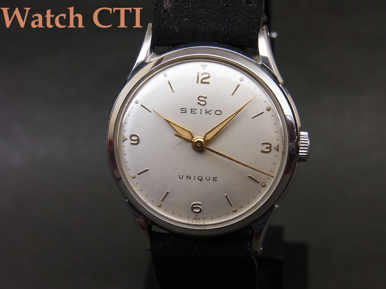☆12・3・6・9とアップライドのインデックスとなると何となくスポーティーで押しの強い文字板を連想しますが、この現品はなんとも爽やかなイメージが漂います(ませんか?)長短針にはしっかり夜光もはいってますが、全体のイメージは「真面目」ですね!それから、諏訪スーパーの亀戸版とも言われるユニークでは9石モデルでしっかりした状態の個体は意外に少ないように感じます。