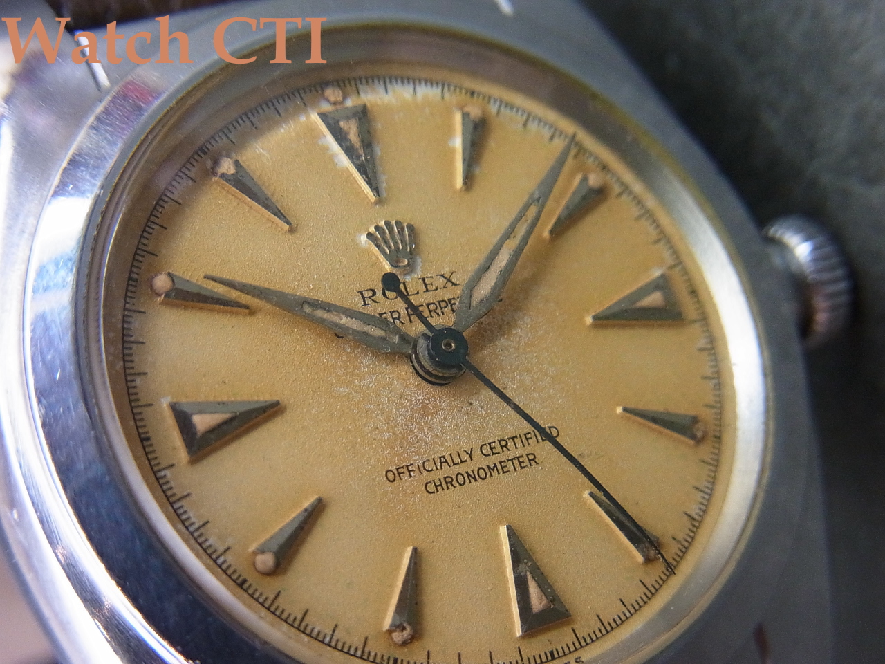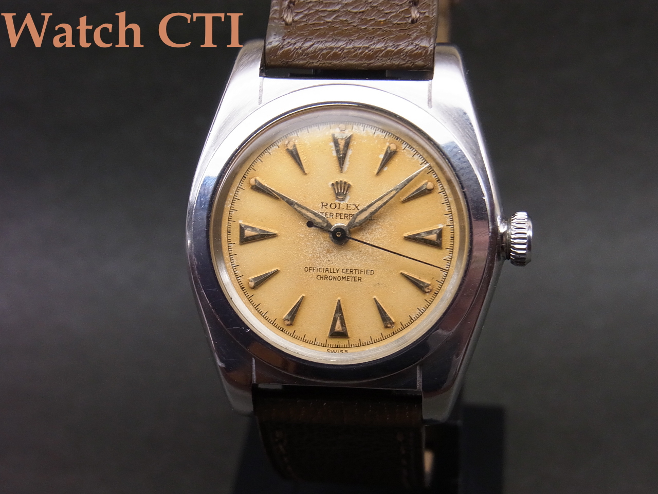 ☆ダイヤルにアプライドの王冠マークが入る、バブルバックとしては最後期に当たる製品ですが、これはこれで、来る50年代の主流となって行くアプライドバー系インデックスを先取りしたかのような愉しさがあります!